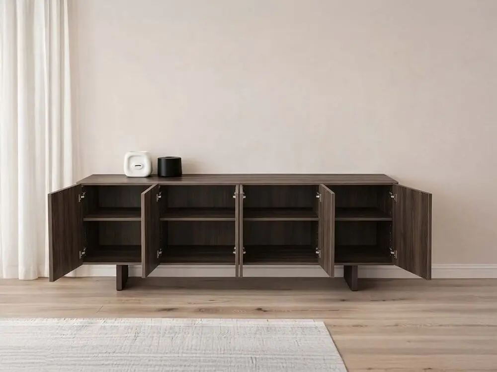 طاولة بوفيه واسعة تمنحك حلاً عمليًا وأنيقًا لتنظيم أدوات السفرة ومستلزمات الضيافة بكل سهولة، حيث تأتي بأربعة أبواب توفر مساحة تخزين كبيرة ومرتبة تحافظ على الأغراض مخفية وبعيدة عن الفوضى. تناسب غرف الطعام كما يمكن وضعها في المداخل لتكون قطعة عملية ذات حضور مميز، ويضفي تصميمها الأنيق لمسة فخامة راقية تعزز جمال المكان وتمنحه طابعًا منظمًا ومتناسقًا.