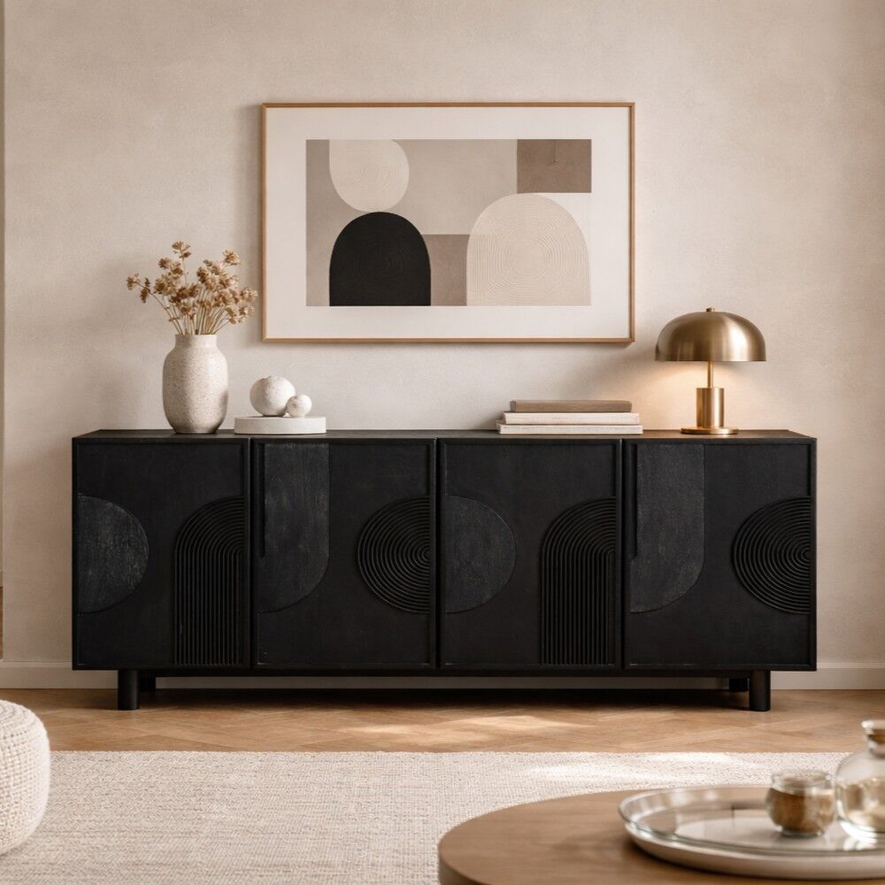 اختيار أنيق يضيف دفئًا وطابعًا طبيعيًا للمكان، طاولة بوفيه مصنوعة من خشب المانجو الطبيعي بتصميم عملي يناسب غرف الطعام والمعيشة ويمنحك مساحة تخزين منظمة مع لمسة جمالية راقية.