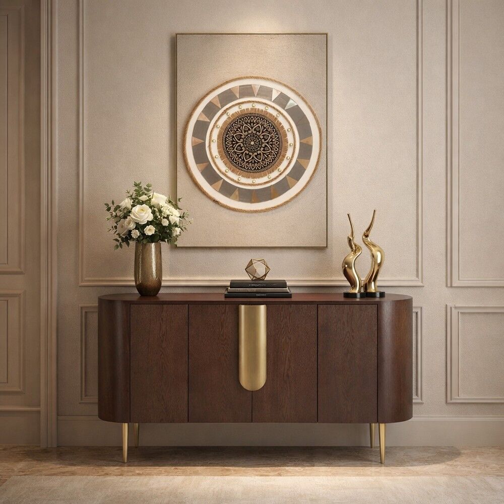 بتفاصيل و قوائم باللون الذهبي، مقاوم للصدأ ويضفي لمسة عصرية فاخرة.طاولة بوفيه تجمع بين الجودة العالية والتصميم الفاخر، لتكون قطعة أساسية تضيف قيمة جمالية وعملية لمساحتك..لاتتردد واطلبها الآن من متجر بيتونيا!
