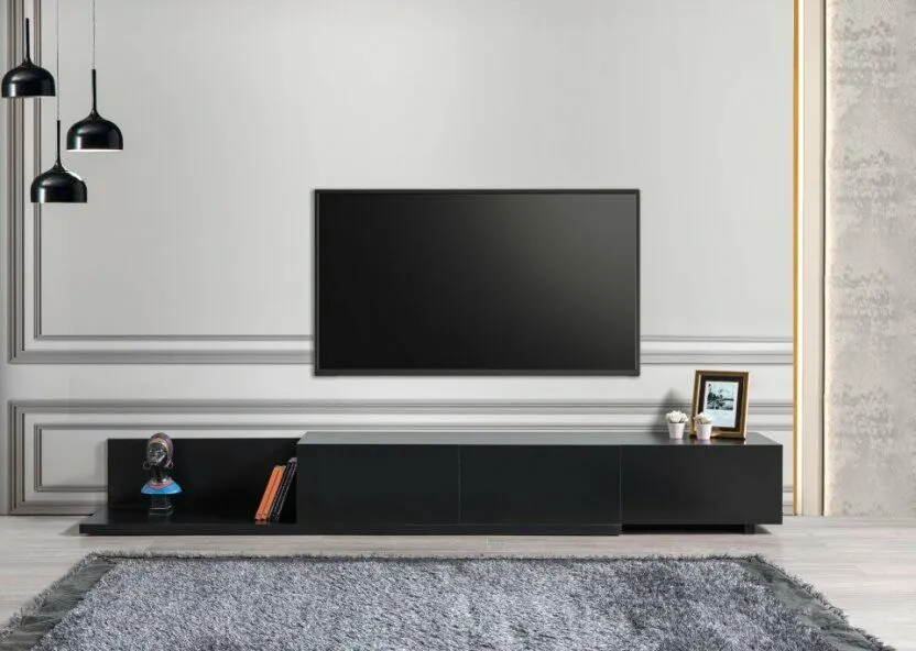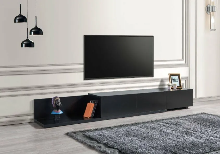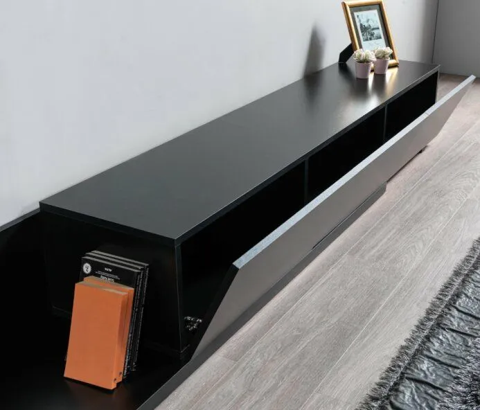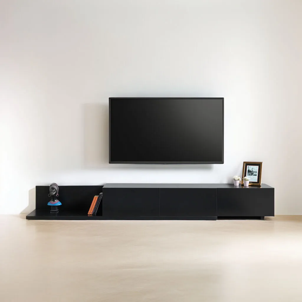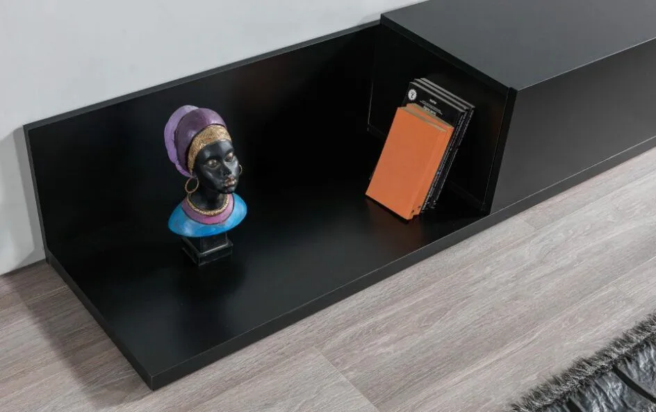 • اكتشف جوهر الفخامة والأناقة مع طاولة التلفزيون بلون اسود أنيق وساحر، مع تفاصيل مميزة وخامات فاخرة تتحمل الاستخدام اليومي بكل سهولة.