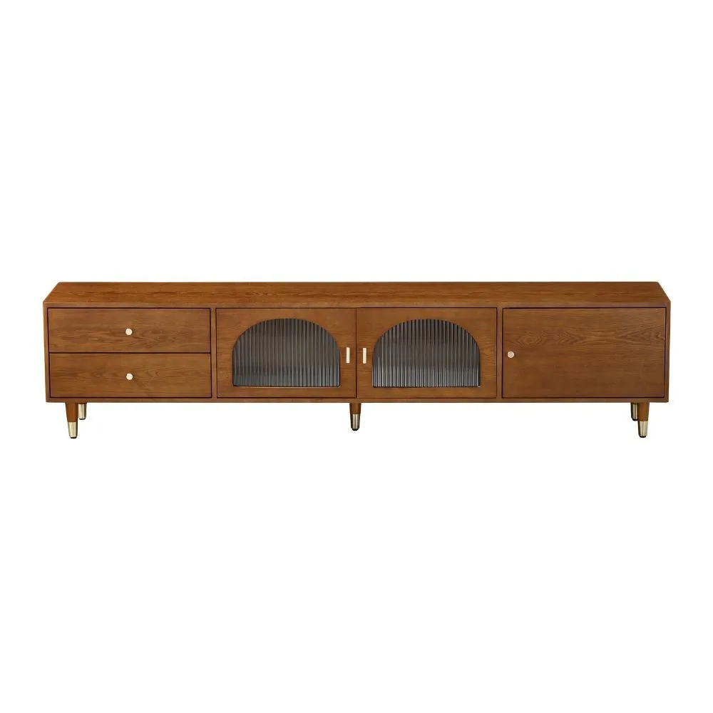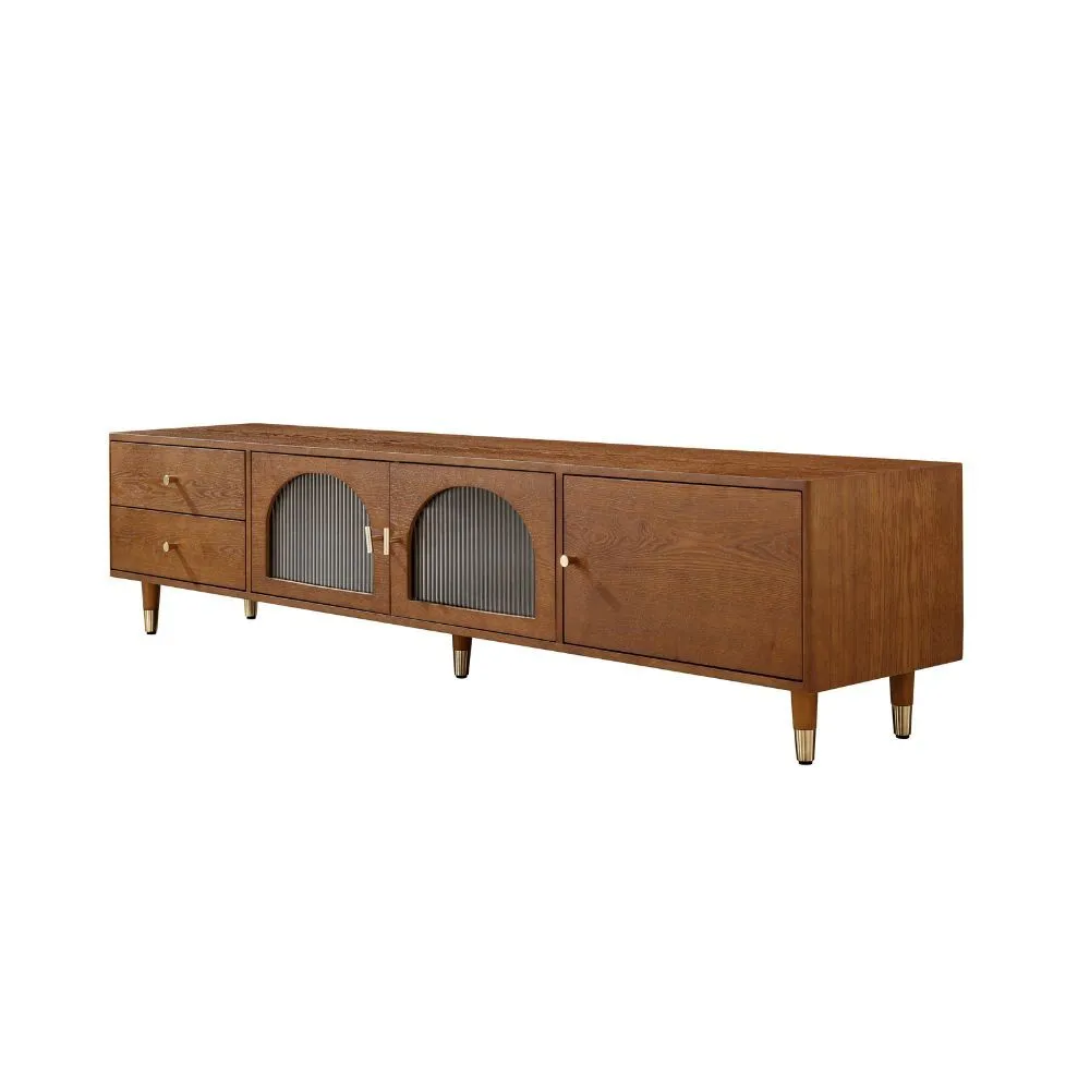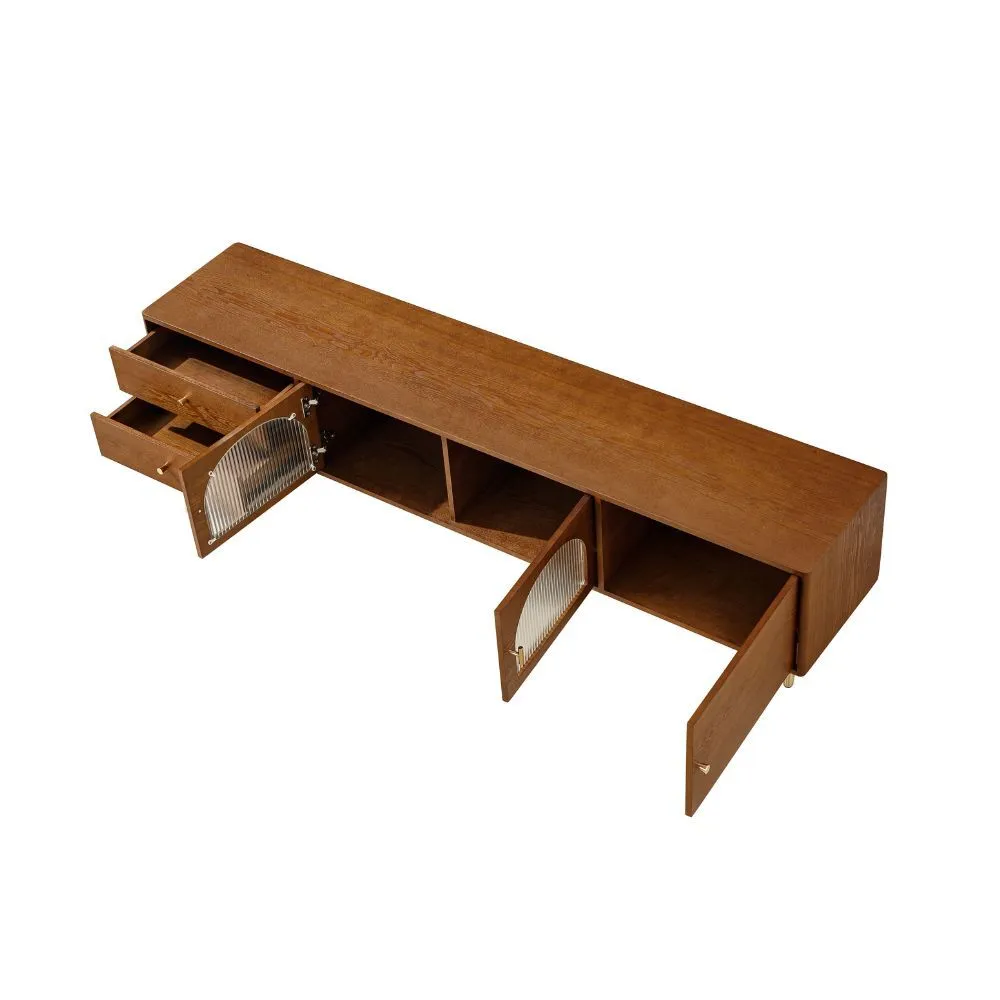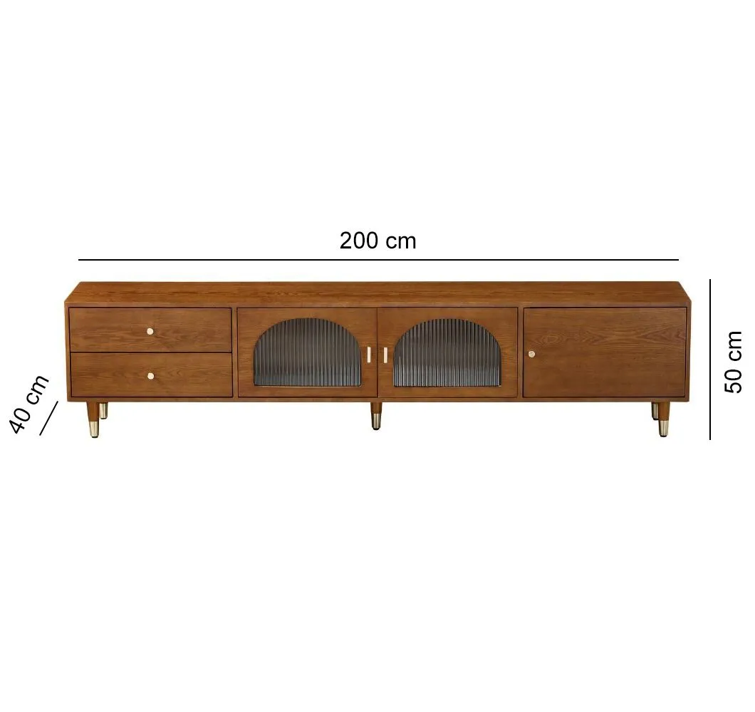 حول مساحة معيشتك إلى مكان عصري وأنيق مع طاولة التلفزيون المصممة بعناية من MDF عالي الجودة والخشب الصلب المتين، مع إضافة لمسة فاخرة من الزجاج والمقابض الذهبية. تجمع هذه الطاولة بين التصميم الأنيق و العملية الفائقة، مما يجعلها الخيار المثالي لأي غرفة معيشة أو صالة.