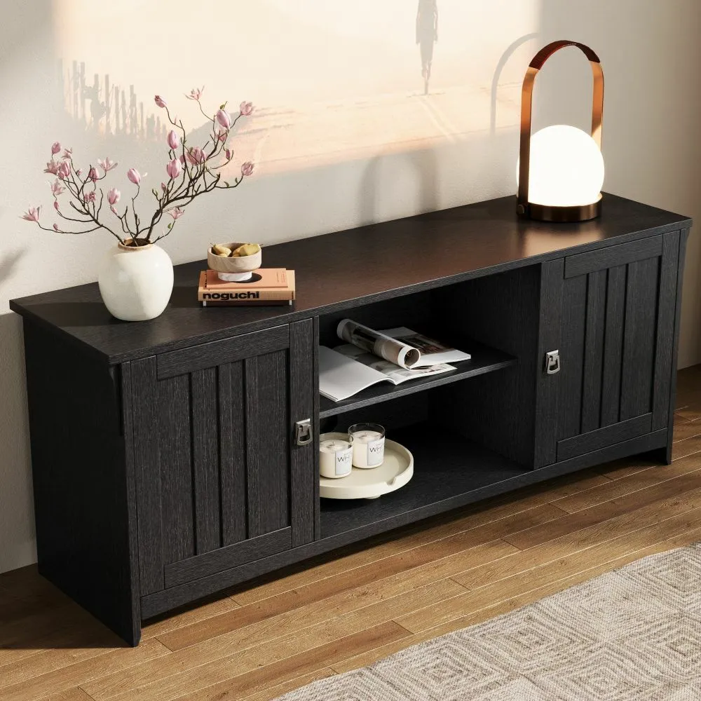 اضف لمسة من الأناقة إلى غرفة المعيشة مع هذه الوحدة المصنوعة من الخشب بلون رمادي . تتميز بتصميم عملي يضم بابين جانبيين للتخزين، مع رفوف وسطية مفتوحة مثالية للأجهزة الإلكترونية أو الكتب. مزودة بفتحات خلفية لمرور الأسلاك، مما يضمن تنظيمًا أنيقًا وخاليًا من الفوضى. تصميمها البسيط والخطوط العمودية على الأبواب يجعلها قطعة مثالية تناسب مختلف أنماط الديكور.
