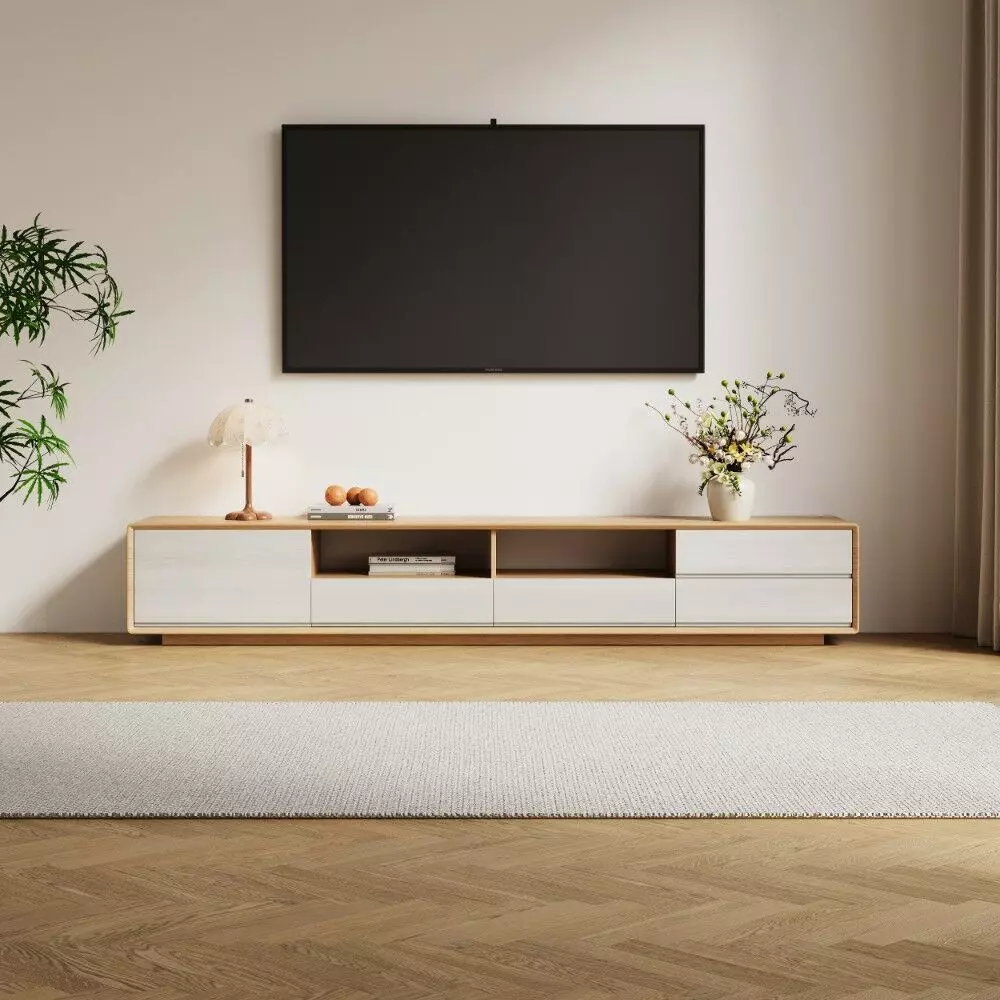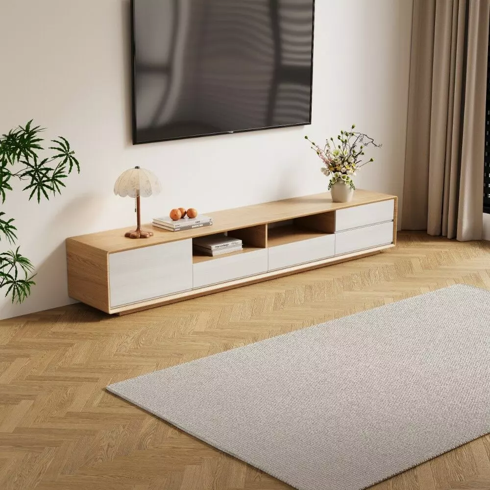 طاولة تلفزيون بتصميم عصري متوازن يجمع بين البساطة والفخامة، مع قاعدة صلبة تضمن الاستقرار وسهولة الاستخدام في أي مكان بالغرفة.