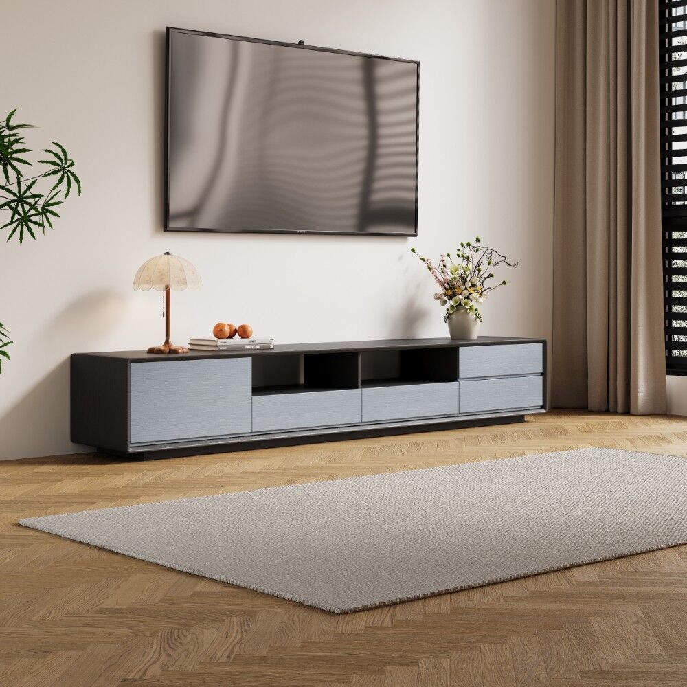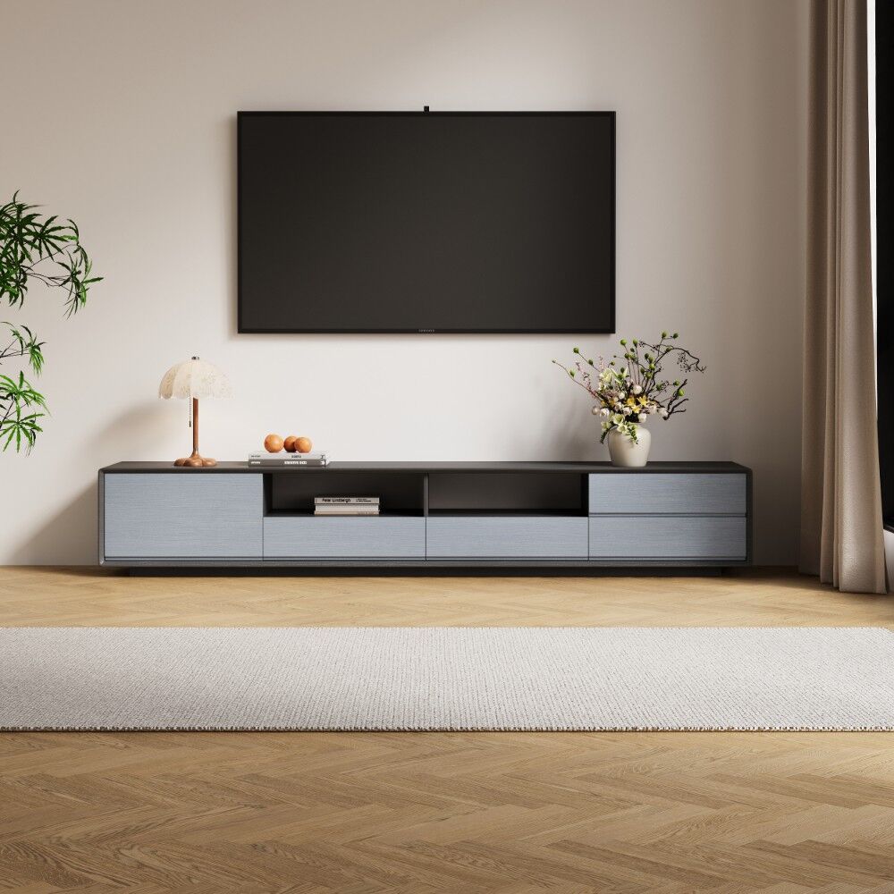 طاولة تلفزيون بتصميم عصري متوازن يجمع بين البساطة والفخامة، مع قاعدة صلبة تضمن الاستقرار وسهولة الاستخدام في أي مكان بالغرفة.