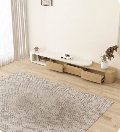 طاولة تلفزيون مودرن بمزيج رائع من الألوان الهادئة والمواد عالية الجودة، تأتي هذه الطاولة لتكون قطعة مركزية تلفت الأنظار في أي غرفة توضع فيها: