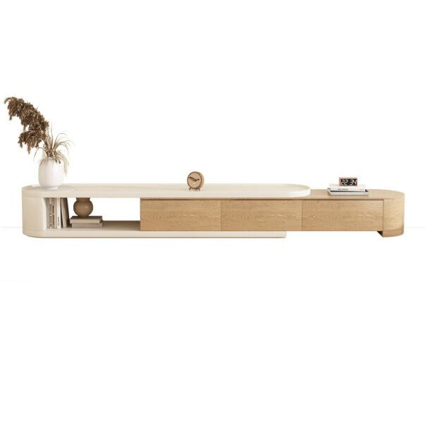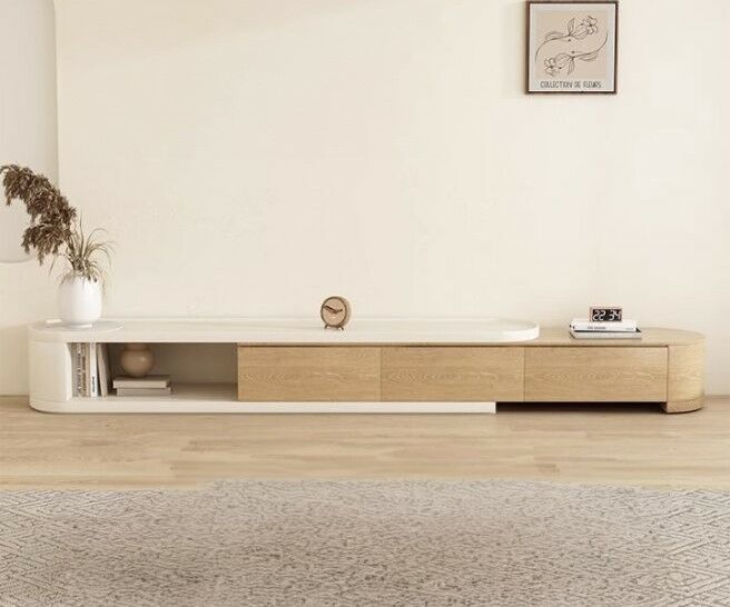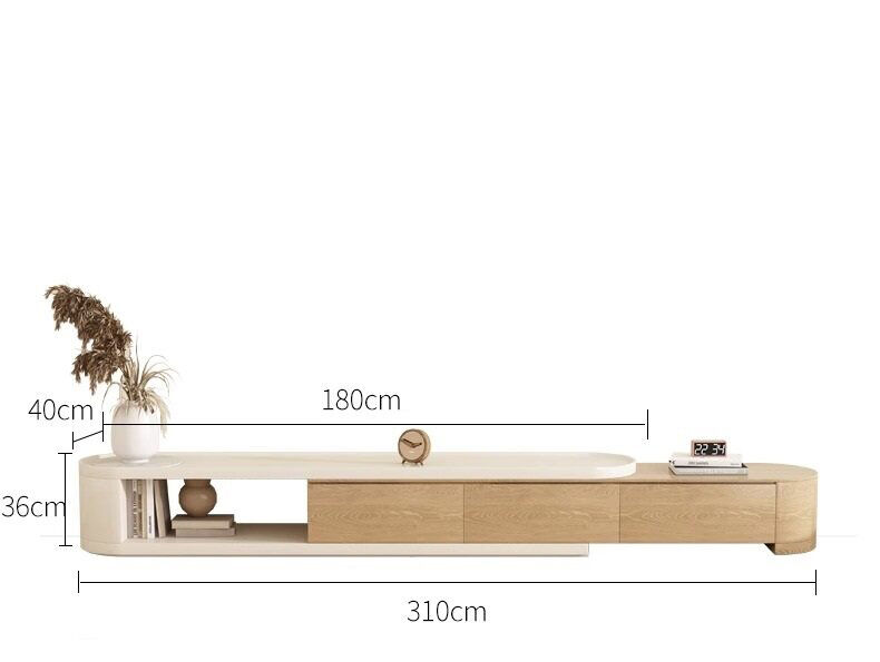 أبعاد طاولة التلفزيون العرض قبل التمدد 180 سم , العرض بعد التمدد :310 سم , الارتفاع : 36 سم , العمق : 40 سم