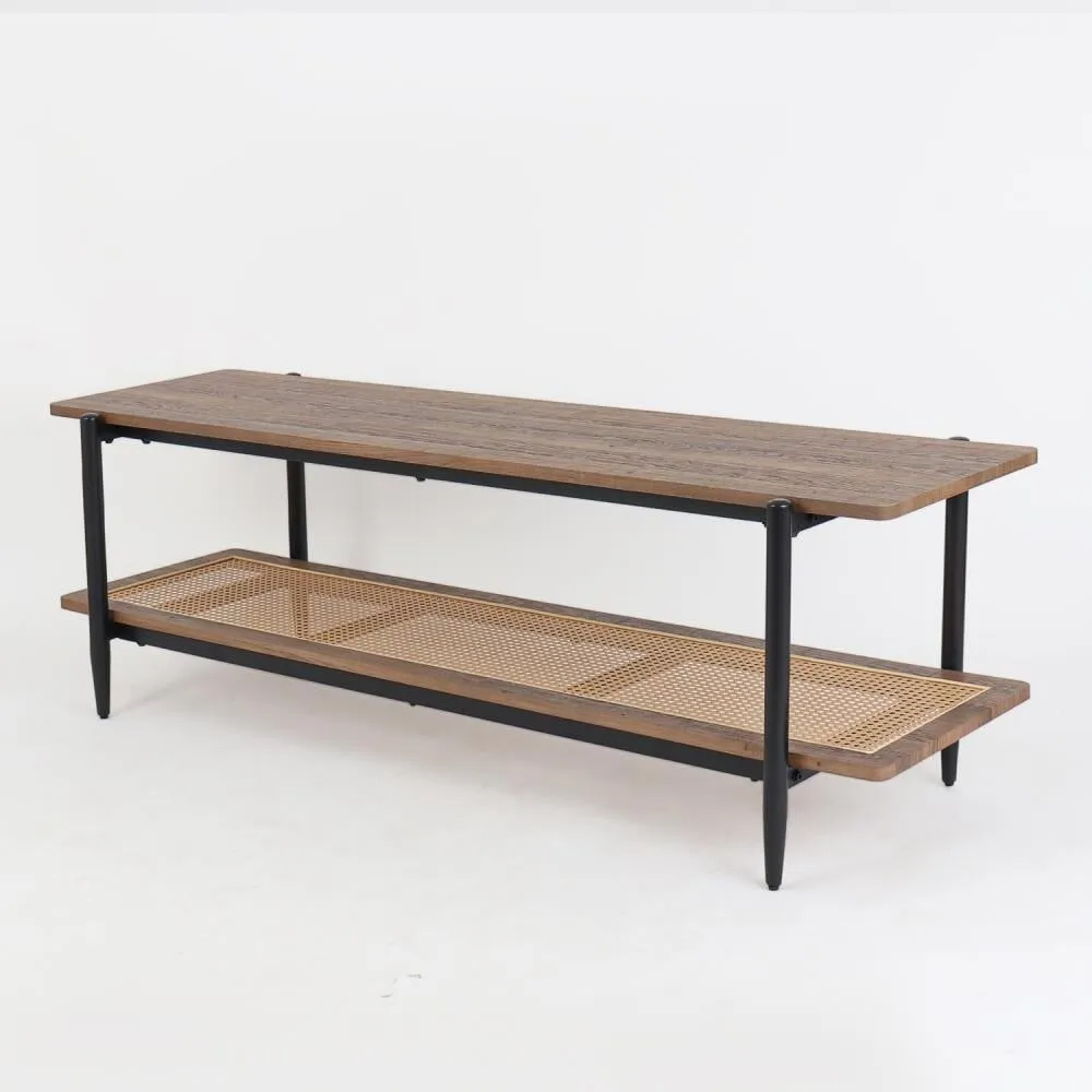 طاولة تلفزيون بتصميم عملي وأنيق، توفر سطحًا مناسبًا لوضع التلفزيون والأجهزة الإلكترونية الأخرى. تتميز بتوفير مساحة إضافية للتخزين، مما يجعلها خيارًا مثاليًا لتنظيم المساحة في غرف المعيشة أو الصالونات.