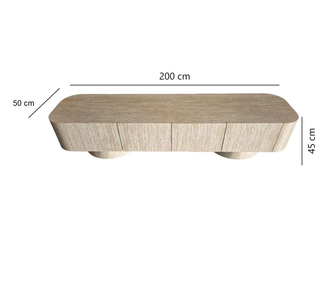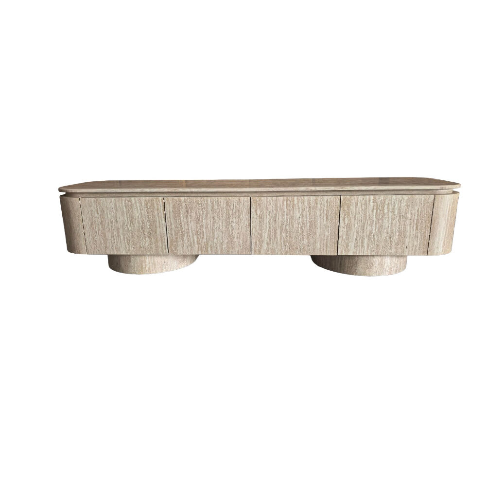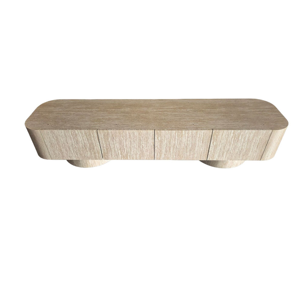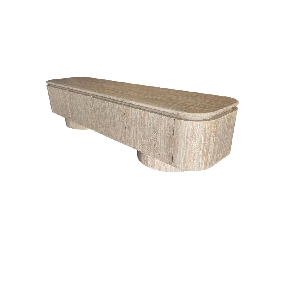 اجعل زاوية الترفيه أكثر أناقة مع هذه الوحدة الخشبية المودرن للتلفاز. تصميم انسيابي بواجهة مموّجة تضيف لمسة فنية مميزة، مع سطح علوي من الرخام الصناعي دافئ مثالي لتزيين القطعة بإكسسوارات أو نباتات. تحتوي على أبواب تخزين واسعة مع مقابض تضيف تباينًا عصريًا جذابًا. مثالية لغرف المعيشة الحديثة، وتوفر مزيجًا مثاليًا من الوظيفة والأناقة.
