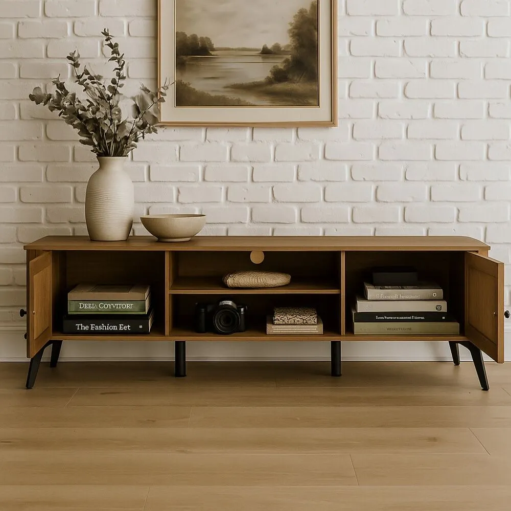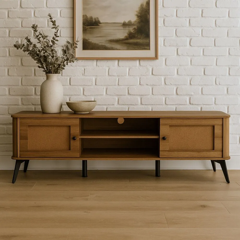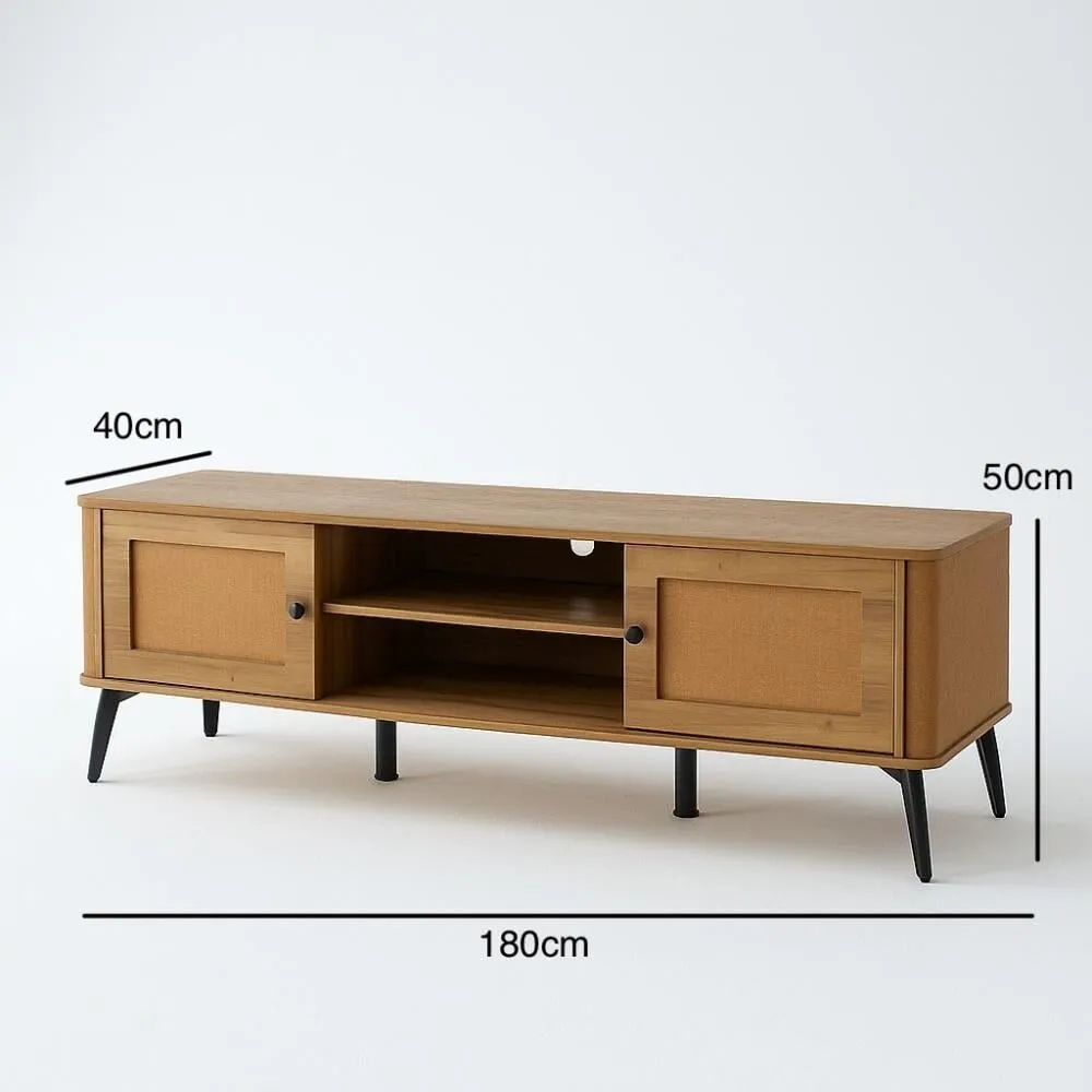 طاولة تلفزيون أنيقة وعملية، تتميز بتصميم واسع يعرض الأجهزة الإلكترونية بشكل مرتب. عرضها 180 سم يوفر مساحة كافية لاستيعاب التلفزيون والأجهزة الأخرى، مما يجعلها خيارًا مثاليًا لغرف المعيشة. تضفي لمسة من الترتيب والأناقة على المكان، مع سهولة الوصول والتنظيم.