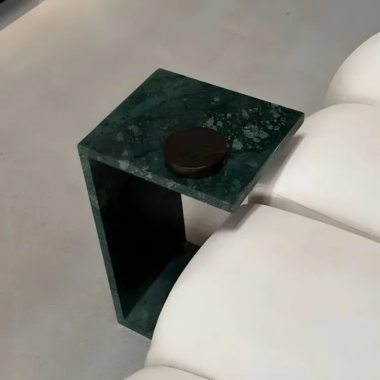 تصميم عصري ينساب بانسيابية حول الأريكة ليخدمك بذوق. مصنوعة من رخام أخضر طبيعي بعروق داكنة متداخلة تضيف عمق وأناقة للتصميم. قطعة عملية تُضفي لمسة فنية على أي مساحة معيشة عصرية.