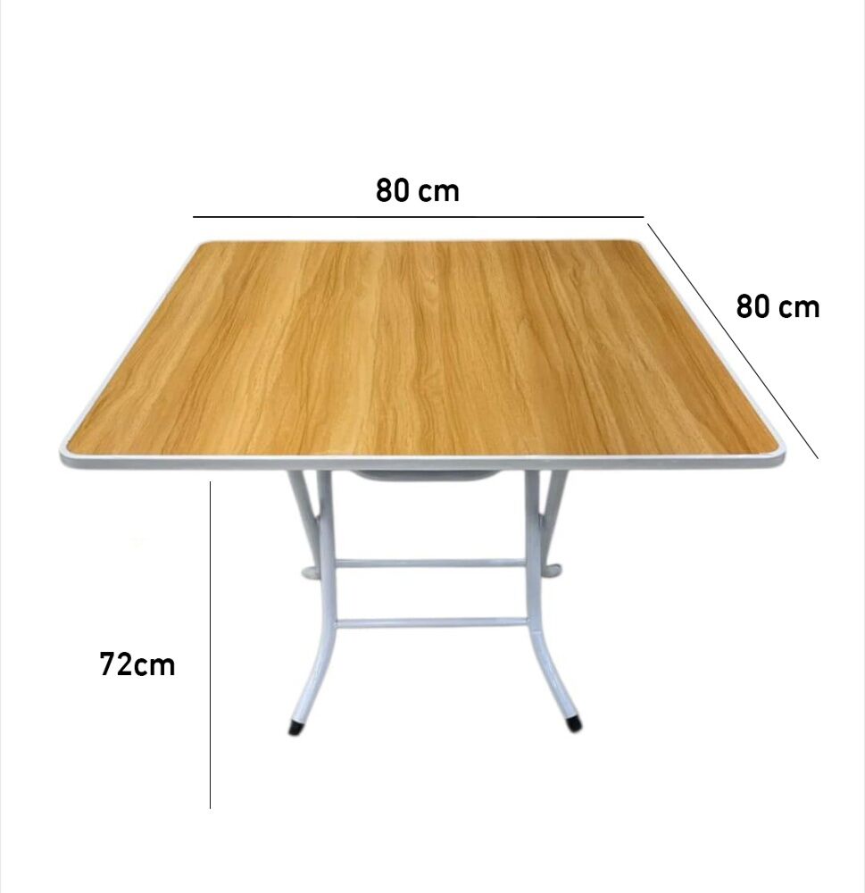 استمتع بالجمع بين البساطة والعملية مع هذه الطاولة المربعة الأنيقة. تأتي بسطح بلون بني فاتح بخطوط دقيقة تضيف لمسة عصرية أنيقة، مدعومة بإطار متين وأرجل قابلة للطي تضمن سهولة التخزين والنقل. مثالية للاستخدام اليومي في المطابخ، الشرفات، الحدائق أو حتى في رحلات التخييم.