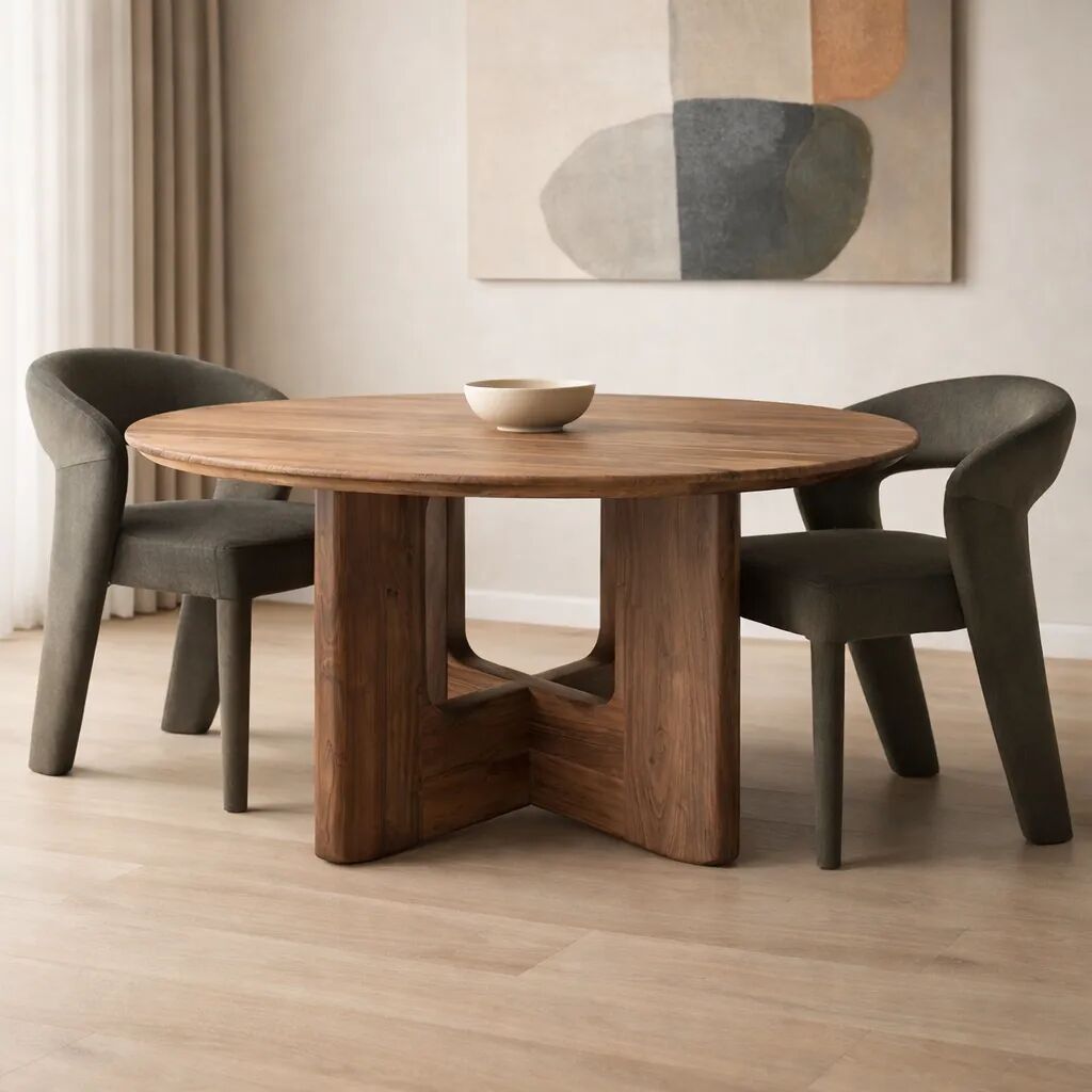 أضف لمسة من الأناقة الطبيعية والدفء إلى غرفة طعامك مع طاولة طعام فينتورا الدائرية بلونها البني الجذاب وتصميمها العصري المتوازن.