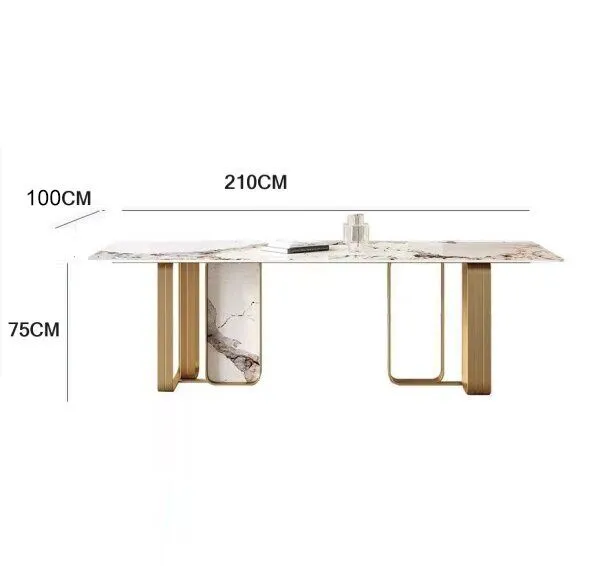 تتميز طاولة طعام مادو بسطحها الرخامي الفاخر والمتعدد الألوان الذي يضفي لمسة من الأناقة والفخامة على غرفة طعامك. الخامة الرخامية المتينة تضمن مقاومة عالية للعوامل الخارجية وسهولة في التنظيف والصيانة، مما يجعلها مثالية للاستخدام اليومي.