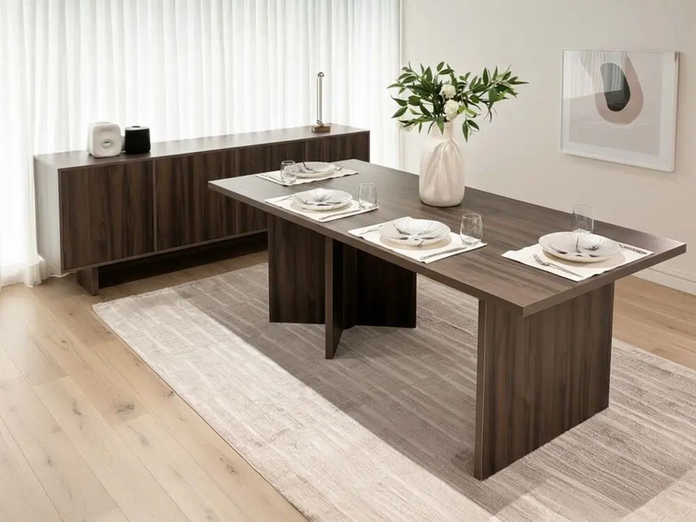 توفر مساحة واسعة تستوعب العائلة والضيوف براحة تامة، ما يجعلها خيارًا مثاليًا للاجتماعات العائلية والولائم والمناسبات الخاصة. تتميز بخطوط عصرية أنيقة تنسجم بسهولة مع مختلف أنماط الديكور، لتكون قطعة أساسية تكمل غرفة الطعام وتمنحها حضورًا متوازنًا يجمع بين العملية والجمال في آنٍ واحد.
