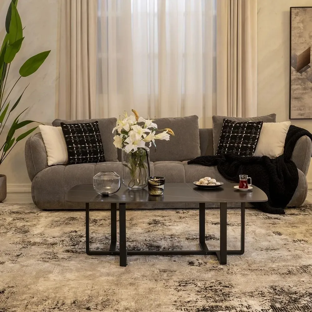 طاولة القهوة تتميز بتصميم أنيق تضفي لمسة من الفخامة والعصرية على مساحة الجلوس. تجمع بين الخامات المتينة والتفاصيل الجذابة لتقدم توازنًا مثاليًا بين الجمال والوظيفة. تعد السطح عمليًا لتقديم الضيافة أو ترتيب القطع الزخرفية، بينما تمنح القاعدة المصممة بعناية ثباتًا وأناقة بصرية. مصنوعة من المعدن والحجر المتكلس.