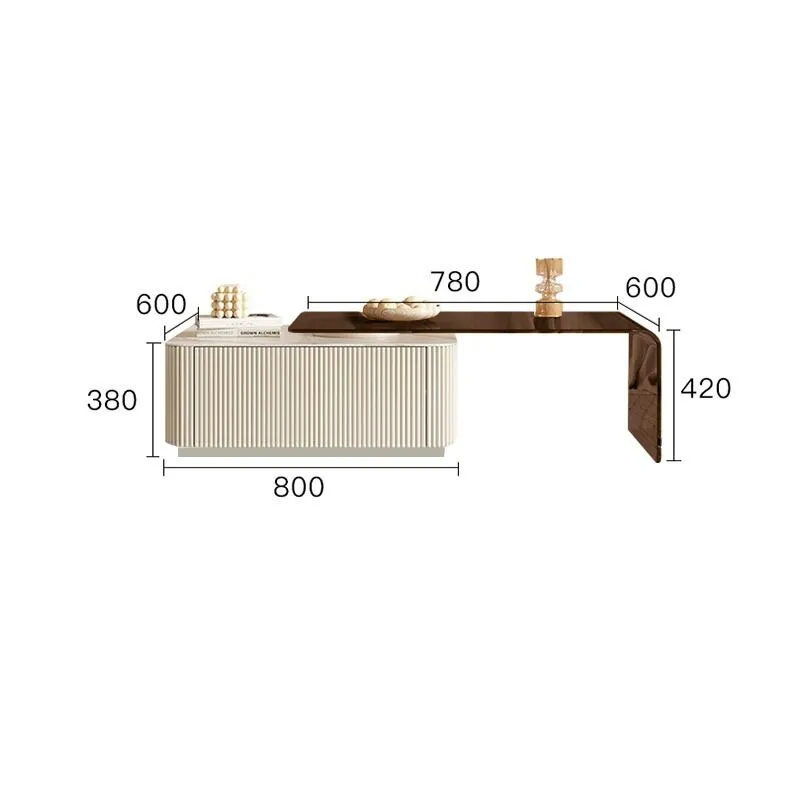 أبعاد المنتج ابعاد القسم المرتفع: العرض 78 سم، الارتفاع 42 سم، العمق 60 سم، ابعاد الجزء المنخفض: العرض 80 سم، الارتفاع 38 سم، العمق 60 س