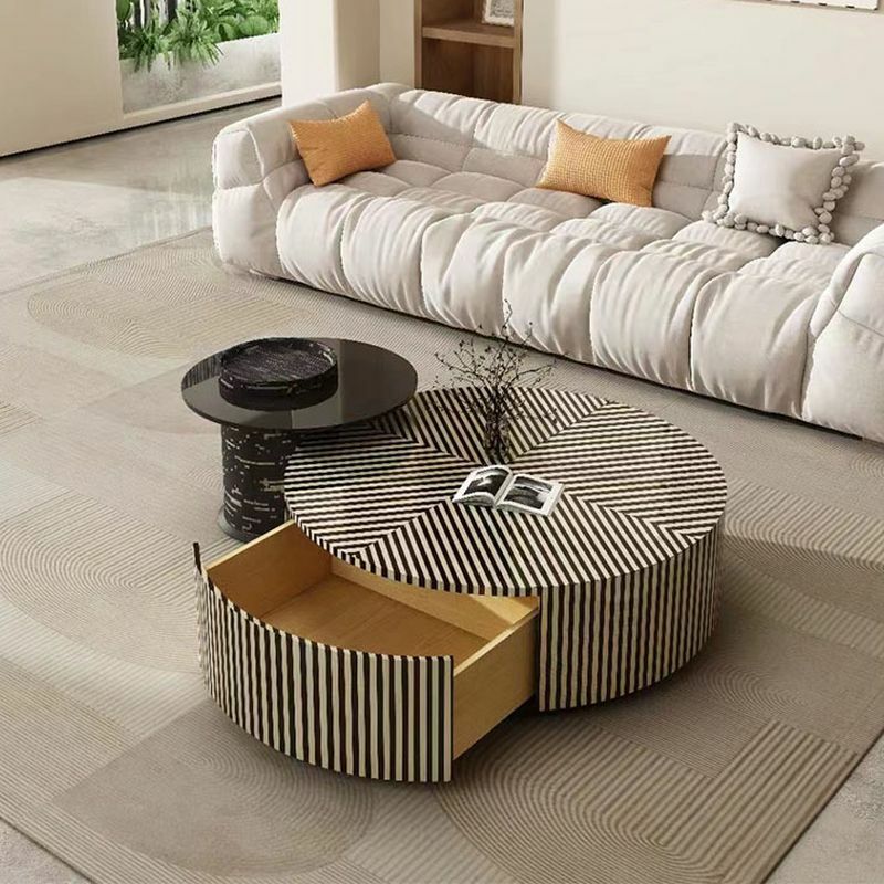 يجمع اللونان الأسود والبيج في هذه الطاولة بين الفخامة والبساطة، مما يسمح لها بالانسجام بسهولة مع مختلف أنماط الديكور الداخلي.
