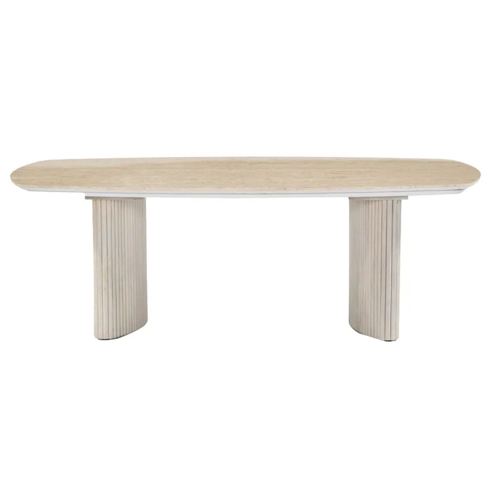 طاولة القهوة كاتالينا من الحجر الجيري والخشب المنحوت هي الخيار المثالي لكل من يرغب في إضافة لمسة من الفخامة إلى منزله. بتصميمها الأنيق والحديث، ستصبح هذه الطاولة محور اهتمام غرفة المعيشة الخاصة بك. يضفي اللون العاجي لمسة من الرقي، بينما تضيف الأرجل الخشبية المنحوتة لمسة من الجمال الطبيعي.