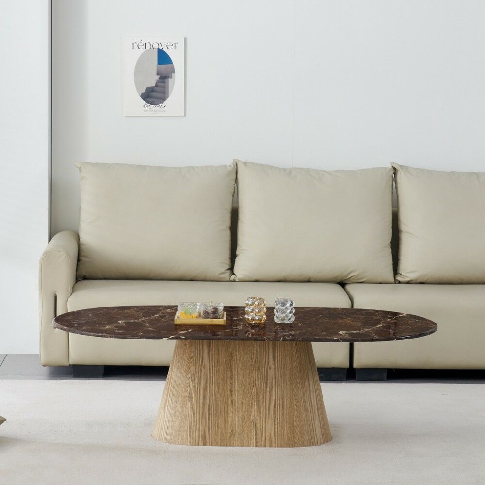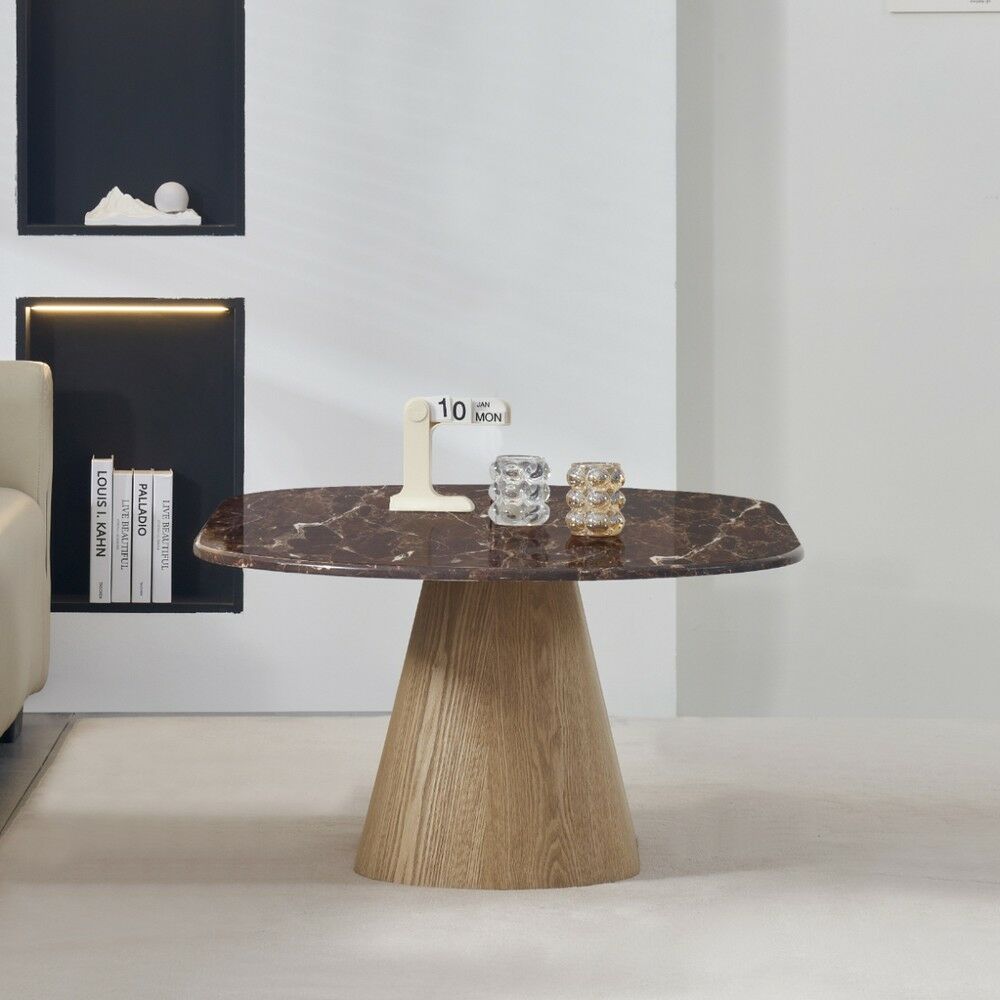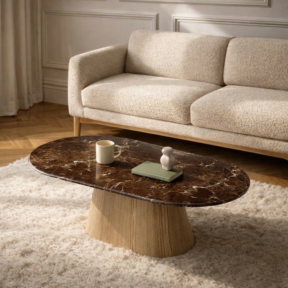 طاولة قهوة أنيقة بتصميم عصري يجمع بين الفخامة والدفء، لتكون قطعة مثالية تضيف لمسة راقية إلى غرفة المعيشة. يتميز سطحها الانسيابي بحضور جذاب يعكس الذوق الرفيع، بينما تمنحها القاعدة المركزية ثباتًا عاليًا وشكلًا متوازنًا ينسجم بسهولة مع مختلف أنماط الأثاث.