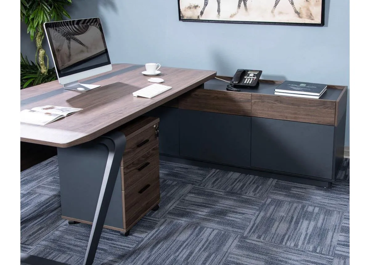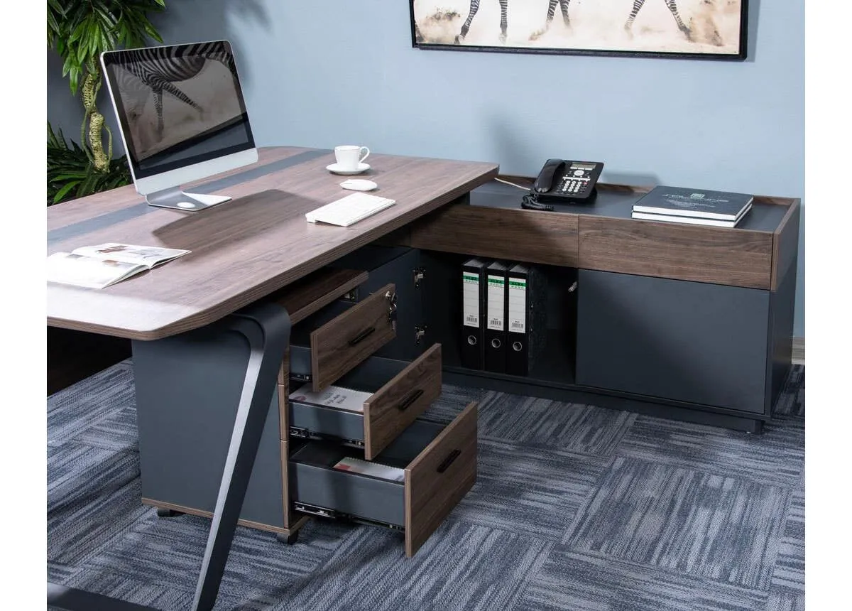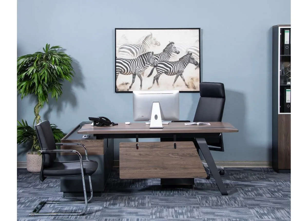 طاولة مكتب فاخرة وأنيقة، تجمع بين التصميم العصري والجودة العالية لتساهم في إضفاء لمسة من الرقي والمهنية إلى مكتبك المميز، لا تتردد في اقتناء هذه القطعة! فتصميمها العصري يجعلها مناسبة لأي نمط ديكور في أي مكتب