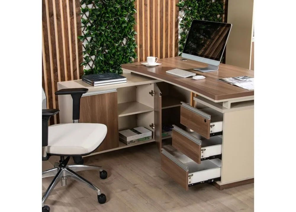 مكتب يوفر مساحة تسهل عليك العمل، أو الدراسة أو ممارسة هواياتك ضمن المنزل. تم تصميم المكتب بعناية واختيار ارتفاعه بشكل مثالي ليضمن راحتك عند الجلوس لساعات طويلة. قوائم المكتب متينة ومتحملة لوزن هيكل المكتب والمقتنيات التي توضع عليه.