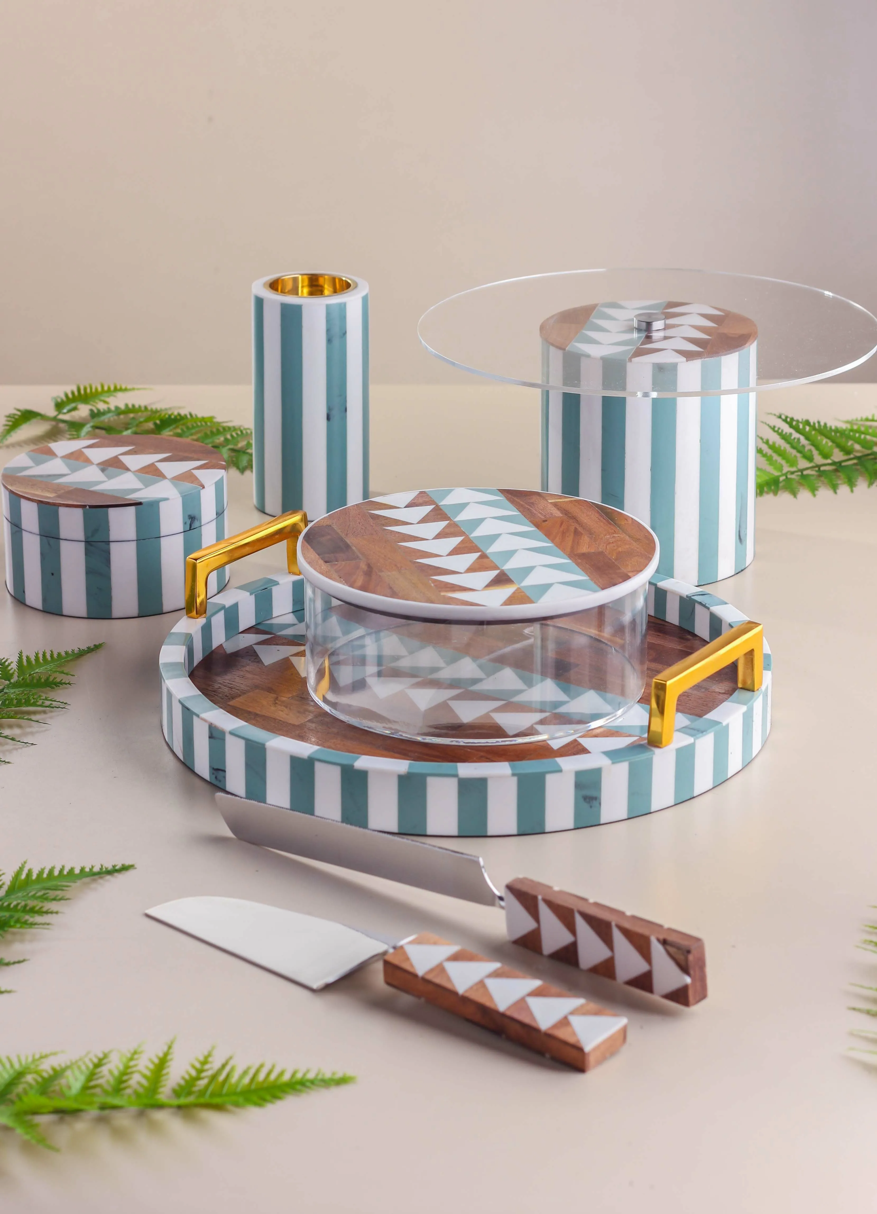 طقم تقديم دايريكشن المتكامل بتصميم عصري هندسي وجذاب يضفي الاناقة على طاولة التقديم الخاصة بك.