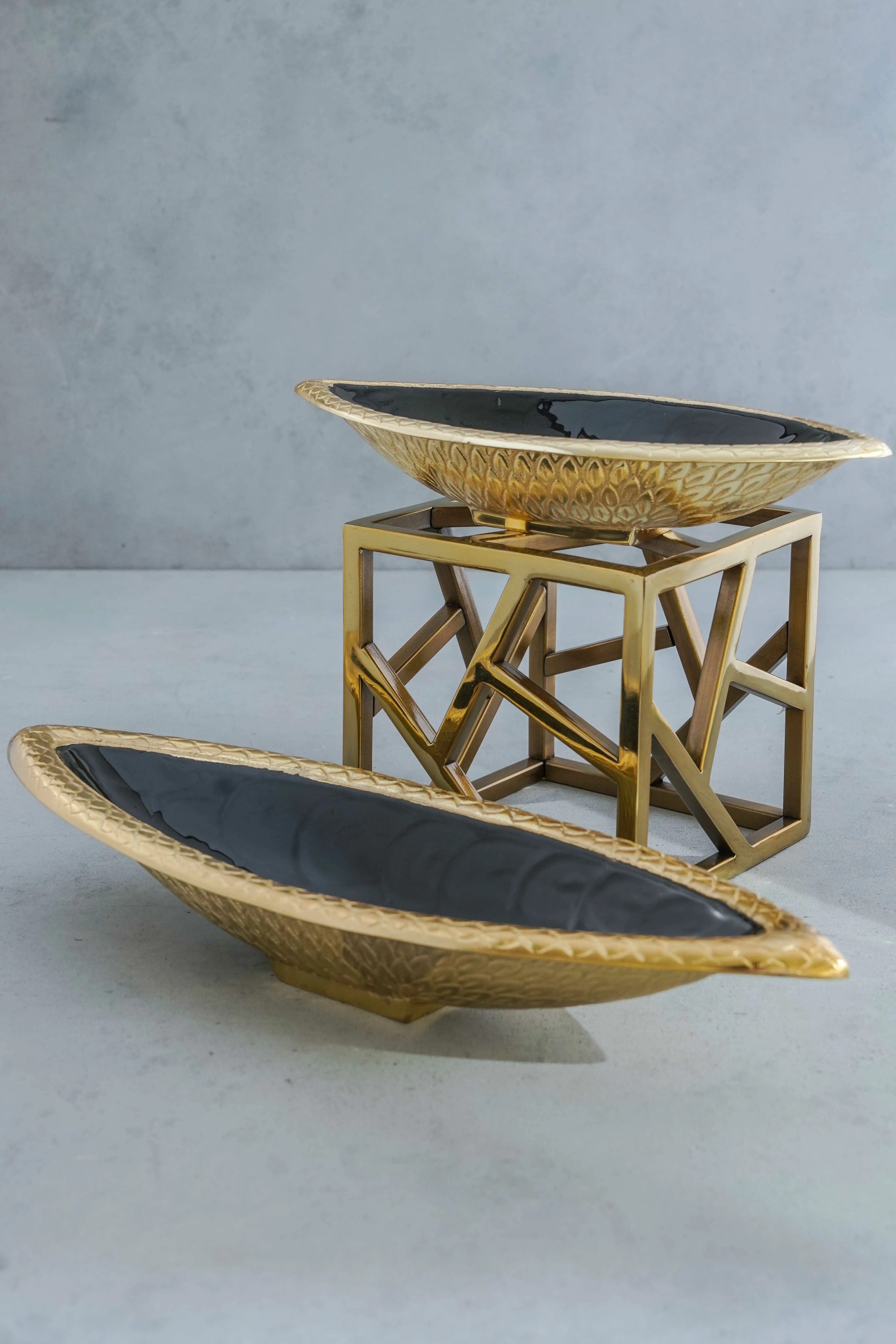 قدم ضيافتك بأسلوب فريد وفاخر باستخدام أجمل أطباق التقديم المودرن والمميزة. طقم تقديم كوهريك - لون أسود وذهبي يشكل إضافة مميزة لمجموعة التقديم الخاصة بك بفضل تصميمه ذو الطابع الملكي الفخم. كما أنه مصنوع يدويا من الستيل العالي الجودة على يد الحرفيين المهرة.