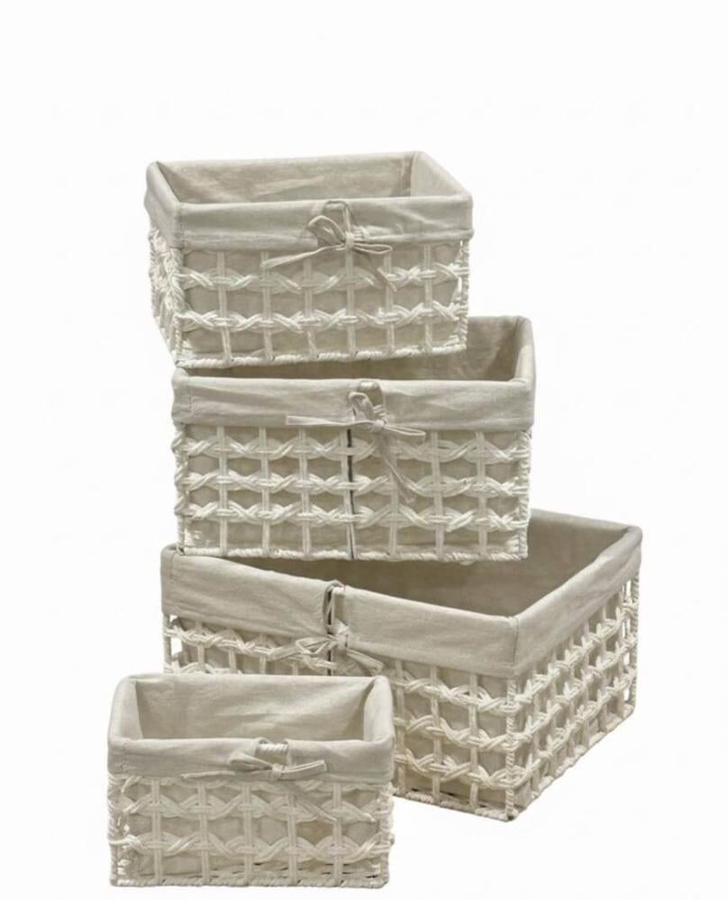 طقم سلال تخزين يدوي تولاي - 4 قطع - ابيض