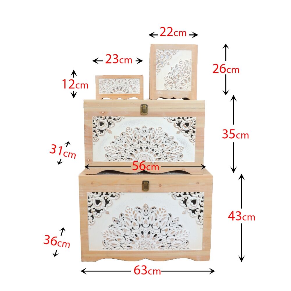 | أبعاد المنتج | مقاس الحجم الكبير: العرض 63 - العمق 36 - الارتفاع 43 مقاس الحجم الوسط: العرض 56 - العمق 31 الارتفاع 35 مقاس علبة المناديل: العرض 23 - الارتفاع 12 - العمق 12 مقاس سلة المهملات: العرض 22 - الارتفاع 26 - العمق 22 |