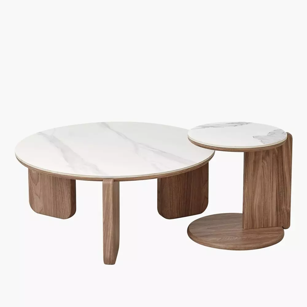 ابعاد الطاولة القهوة القُطر: 80 سم - الوزن: 32 كجم - الارتفاع: 35 سم ابعاد الطاولة الجانبية القُطر: 40 سم - الارتفاع: 42 سم |