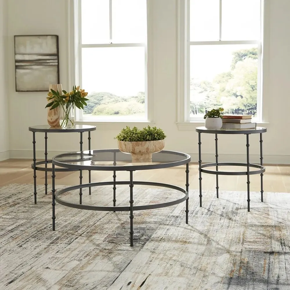 | أبعاد المنتج | ابعاد طاولة القهوة القطر 91 - ارتفاع 47 سم ابعاد الطاولة الجانبية قطر 56 - ارتفاع 62 سم |