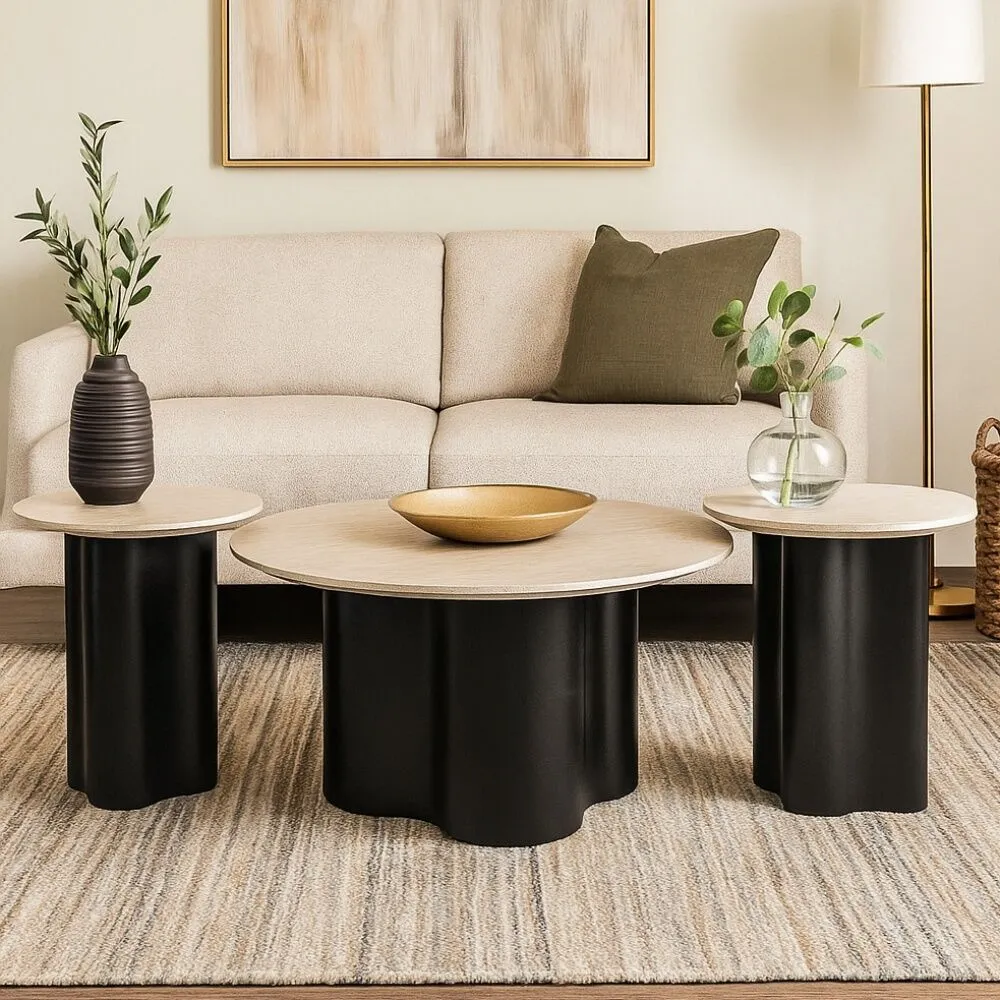 | يتضمن الطقم | 1 طاولة قهوة - 2طاولة جانبية |