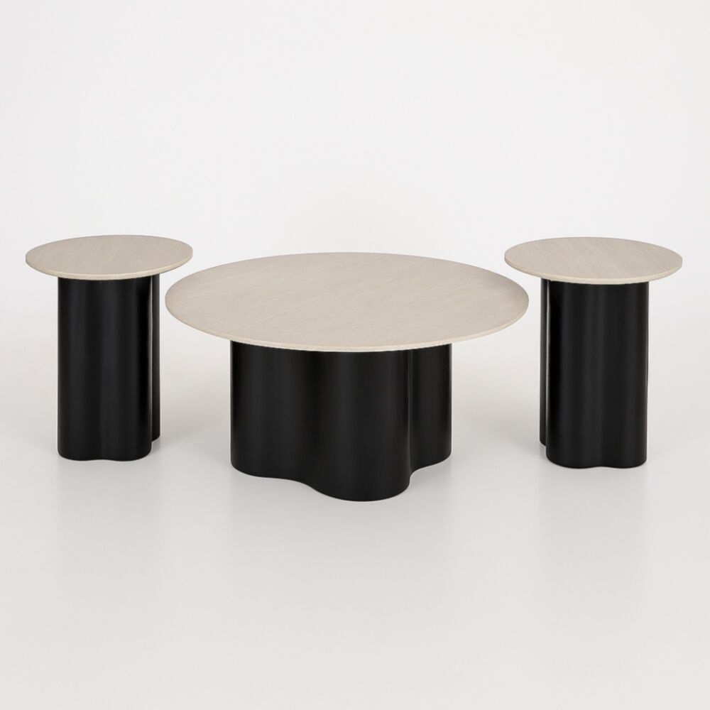 | أبعاد المنتج | طاولة القهوة: القطر 90 - الارتفاع 45 الطاولة الجانبية : القطر 45 - الارتفاع 55 |