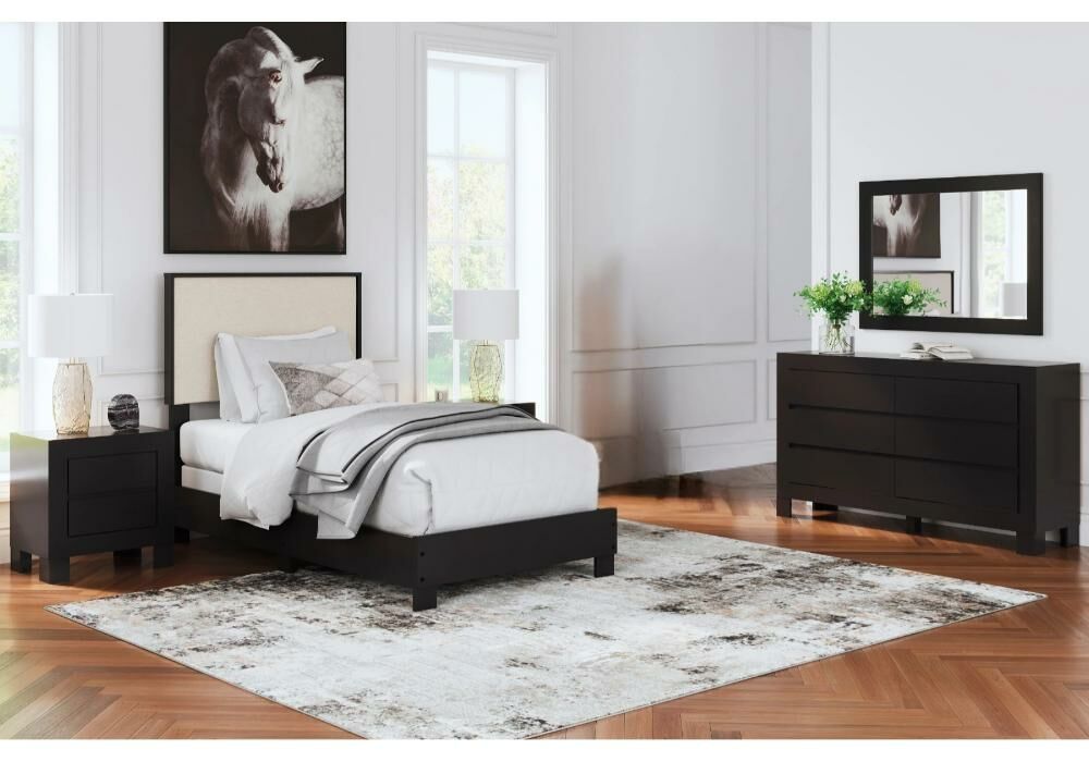 | يتضمن الطقم | 1 سرير - 2 كومدينو - مرآة - طاولة تزيين - مرتبة سرير - قاعدة سرير |