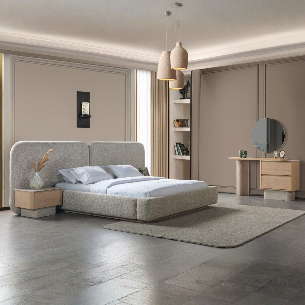 تصميم عصري باللون البيج يضفي أجواء هادئة ودافئة ويجعل غرفة النوم مساحة مثالية للاسترخاء.لا تتردد واطلبه الآن من متجر بيتونيا!