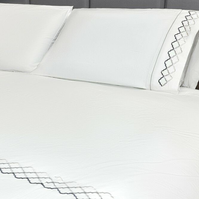 | يتضمن الطقم | 2 غطاء وسادة مطرز 2 غطاء وسادة ساده 1 شرشف سرير مطرز 1 ملاية سرير |