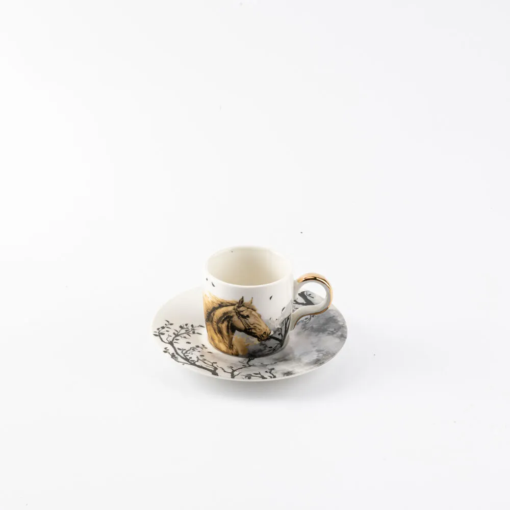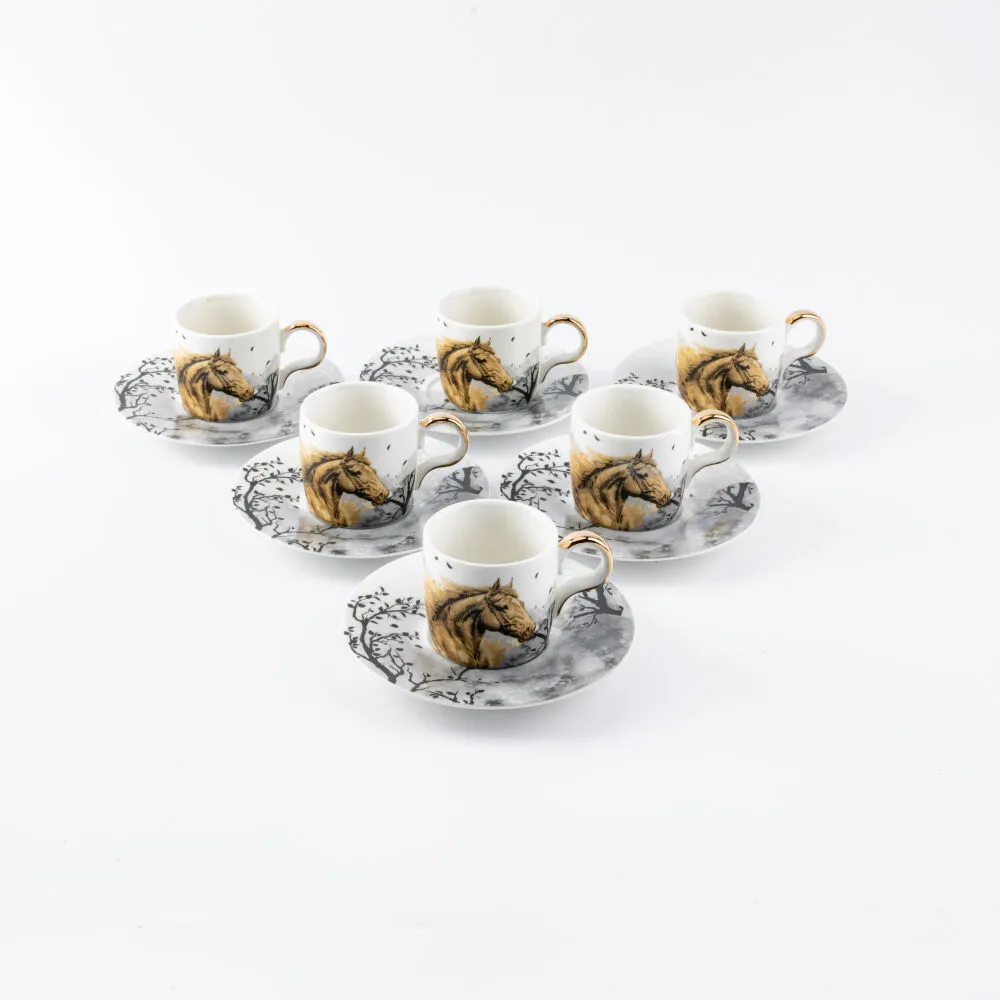 يتضمن الطقم 6 فناجين قهوة و 6 صحون