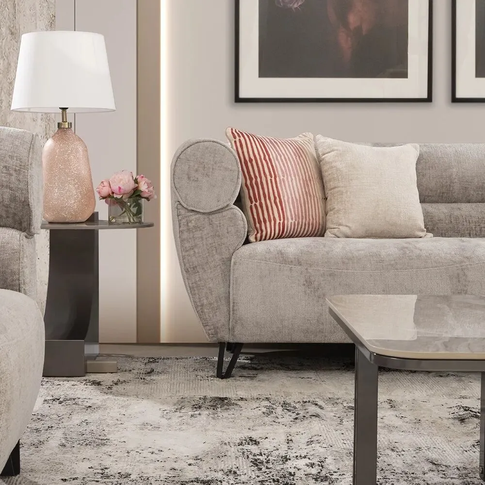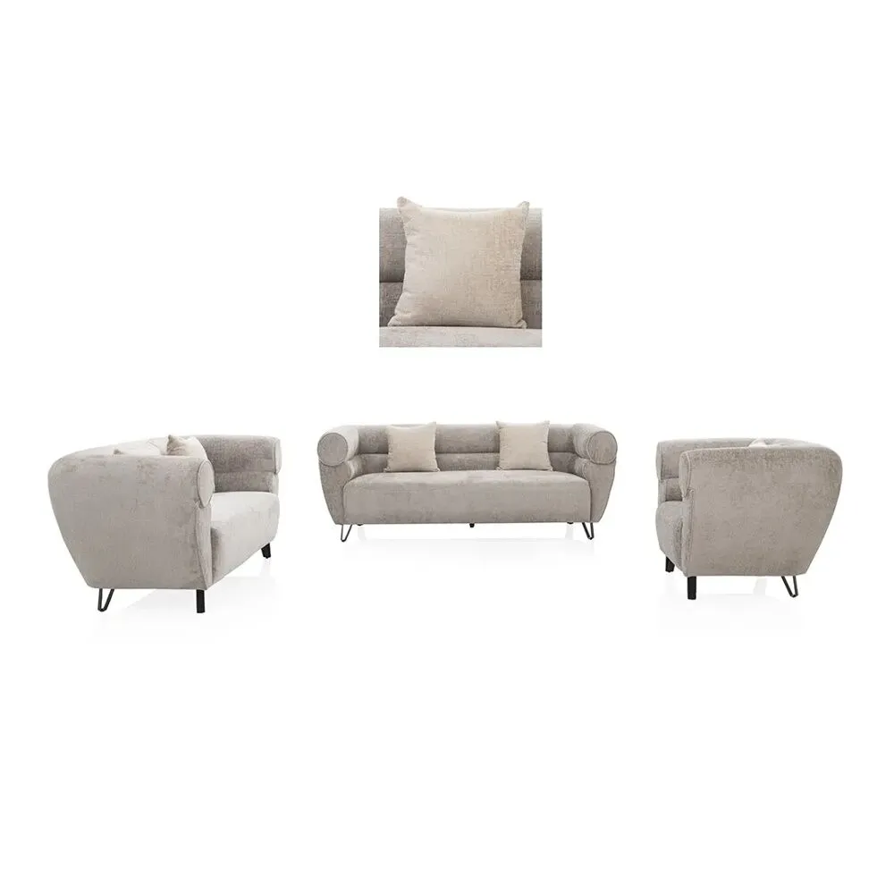 ارفع مستوى منزلك مع طقم كنب 3 قطعة فيستون الأنيق . هذه المجموعة الرائعة منجدة بقماش الشانيل عالي الجودة، مقدمة بلون رمادي يكمل مختلف لوحات التصميم الداخلي بسهولة. طبيعة الشانيل الناعمة والجذابة تعد براحة لا مثيل لها. يستند طقم VESTON على أرجل معدنية قوية، ويوفر دعمًا استثنائيًا وجمالية عصرية.