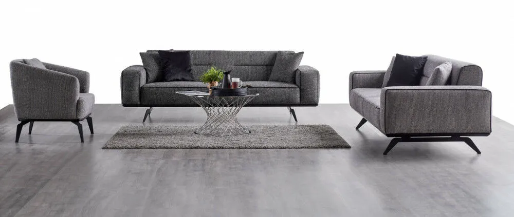 • اكتشف جوهر الراحة والأناقة مع طقم كنب مونامي بلون رمادي أنيق وساحر، مع تفاصيل مميزة وخامات فاخرة تتحمل الاستخدام اليومي بكل سهولة.