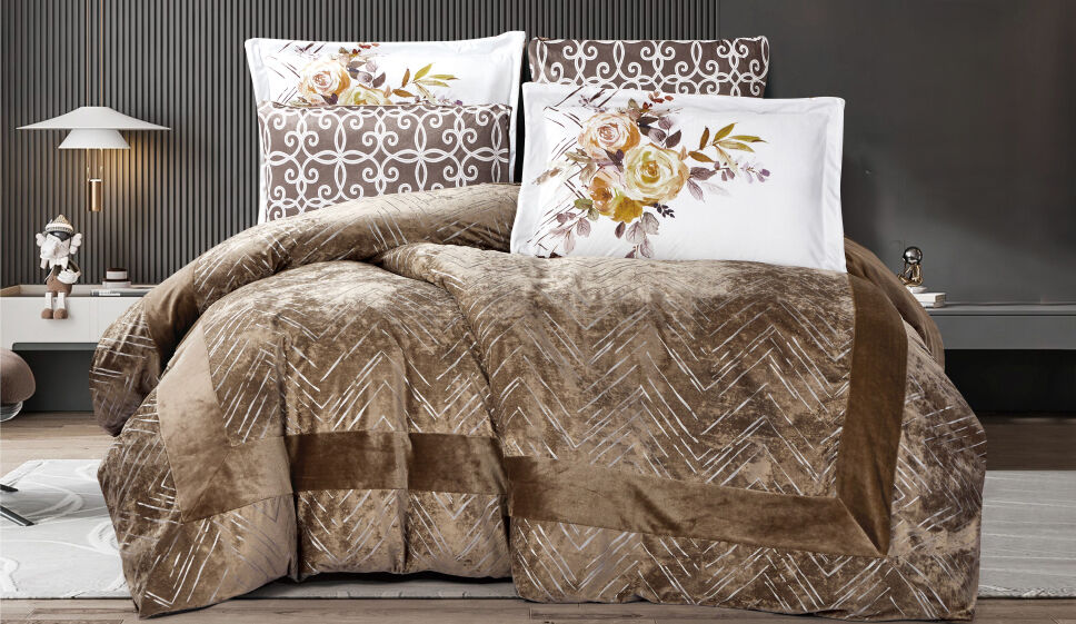 أنت تراجع:طقم لحاف مفرد فيلروز مخمل 4 قطع - بني غامق