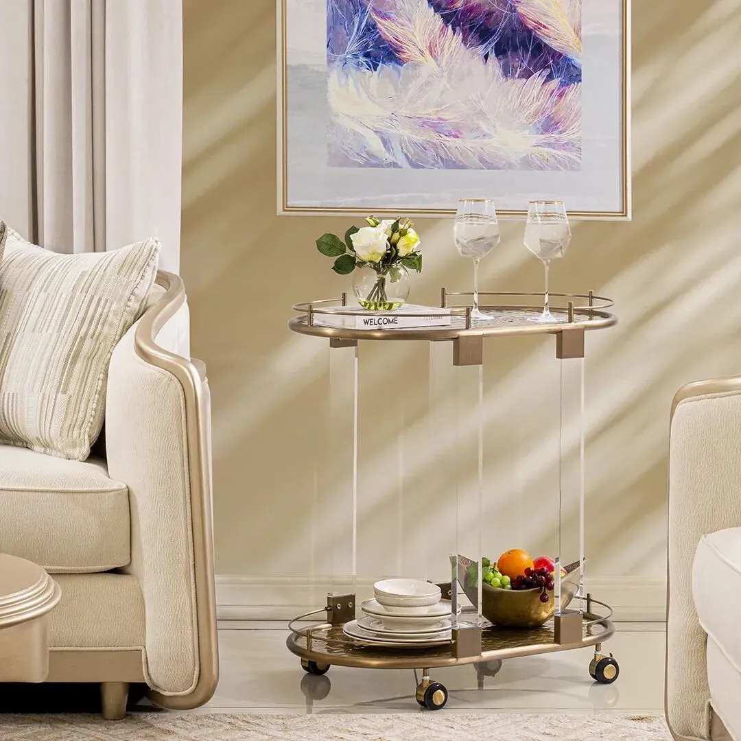 عربة خدمة أنيقة وعملية، مصممة لتسهيل نقل المشروبات أو المأكولات بمرونة وأناقة. تتميز بتصميم متناسق ومساحة متعددة المستويات، مما يجعلها إضافة مثالية للحفلات أو اللقاءات أو حتى للاستخدام اليومي في المنزل.