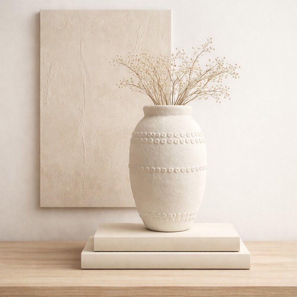 تجسّد هذه الفازة السيراميكية بلونها الكريمي الدافئ معنى البساطة الراقية، حيث تمتزج النغمة الهادئة مع خامة السيراميك الناعمة لتمنح أي مساحة لمسة من الأناقة الهادئة والانسجام البصري. تصميمها المتوازن يجعلها قطعة ديكور مثالية تناسب الطاولات الجانبية، الكونسول، أو أرفف العرض، سواء وُضعت بمفردها كقطعة فنية أو مع تنسيقات زهور طبيعية أو مجففة.