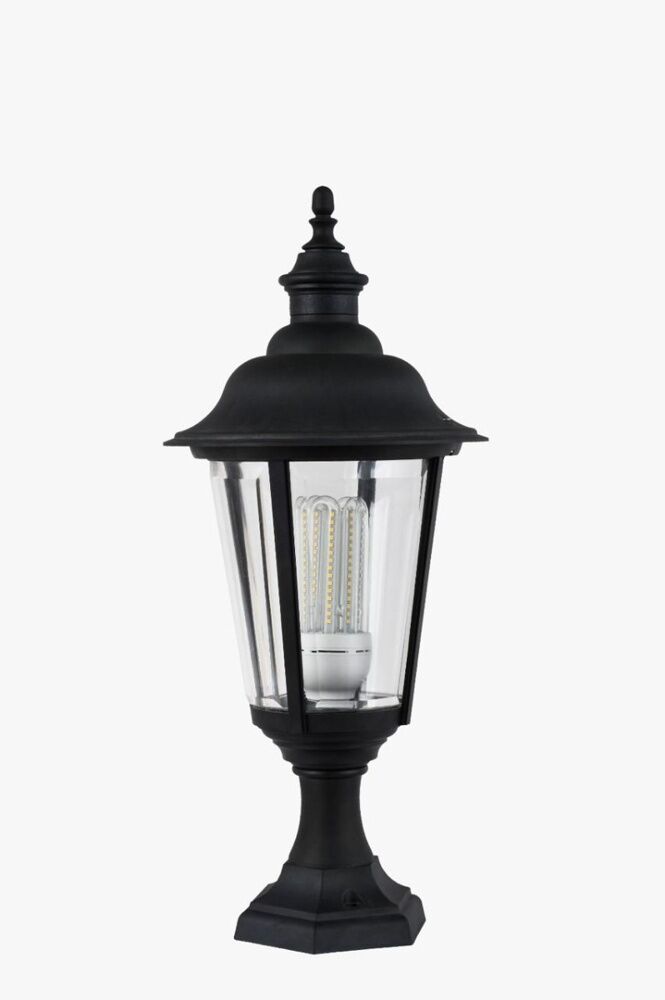 فانوس إنارة سور خارجية كلاسيكية بتصميم أنيق باللون الأسود، مخصصة للتركيب فوق الأسوار والممرات، تجمع بين الجمال والوظيفة في آنٍ واحد. تأتي بهيكل معدني قوي بارتفاع 52 سم وعرض 25 سم، وتدعم لمبات بقاعدة E27 بقوة تصل إلى 100 واط (غير مرفقة). تتميز بهيكل مقاوم للعوامل الخارجية بتصنيف حماية IP44، ما يجعلها مثالية لتحمل الظروف الجوية المختلفة. تصميمها المستوحى من الفوانيس التقليدية يضفي طابعاً كلاسيكياً راقياً على المساحات الخارجية مثل الحدائق، مداخل المنازل، والممرات.
