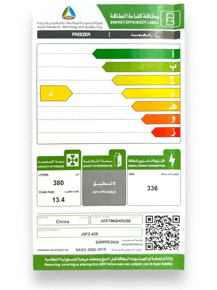 فريزر جستنغ هاوس سعة 380 لتر.