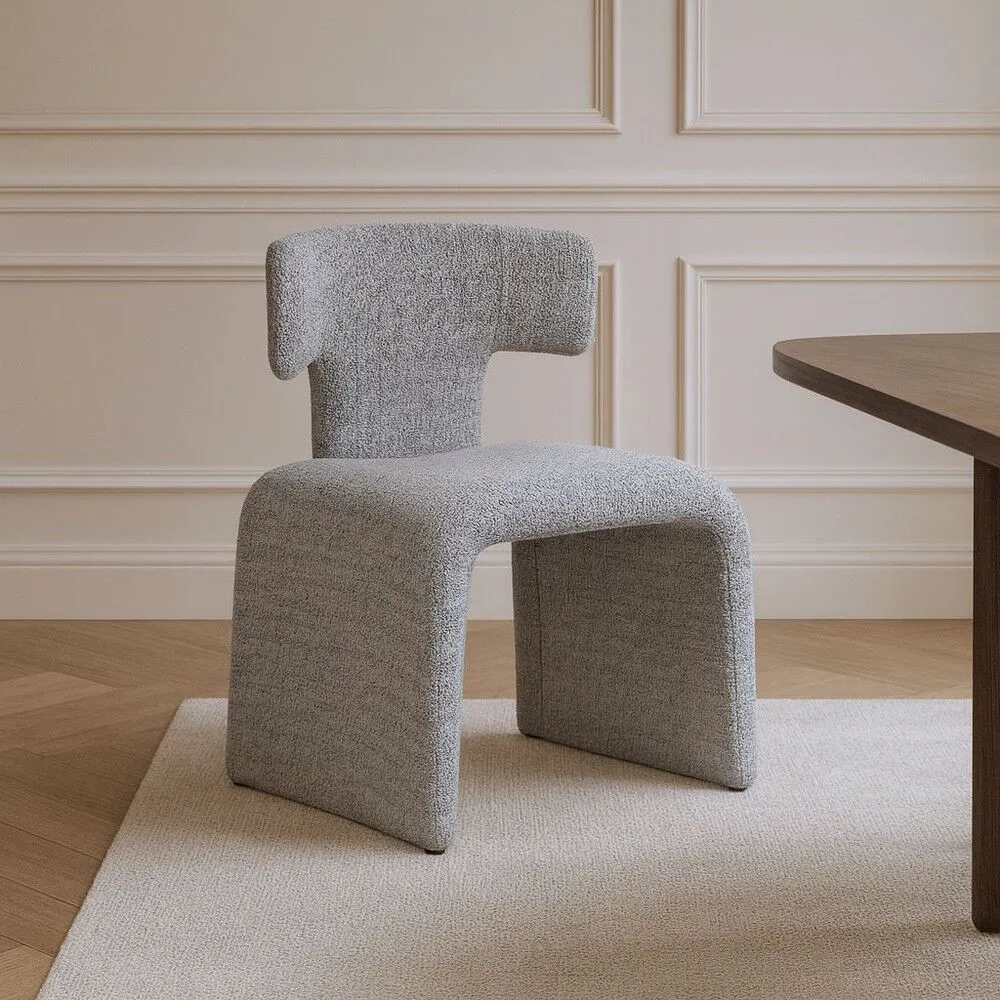 يتميز هذا الكرسي بتصميم عصري جريء يمنحه حضورًا فريدًا في أي مساحة. يأتي بتنجيد بوليستر 100% باللون الرمادي، مما يوفر مظهرًا محايدًا وأنيقًا يناسب مختلف أنماط الديكور. يضفي الشكل الهندسي لمسند الظهر شخصية مميزة، بينما يوفر المقعد المنحني راحة إضافية مع لمسة تصميمية مبتكرة.
