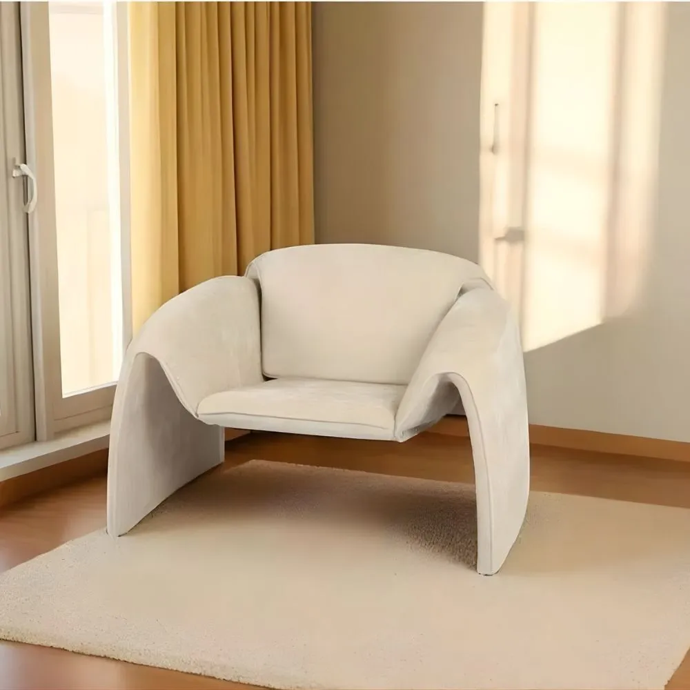 هذه الكراسي المنجدة تتميز بتصميم فريد يلتف حول الجالس، مما يوحي بالراحة والدعم. مصنوعة من قماش ناعم الملمس. تصميمها المعاصر يجعلها إضافة أنيقة ومريحة لأي مساحة داخلية، مع التركيز على الشكل العضوي والانسيابي.