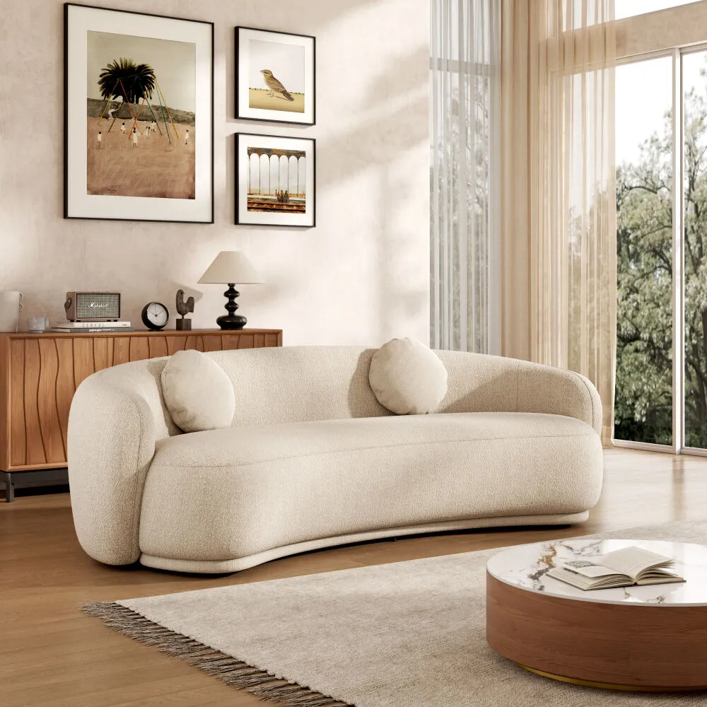 ، المصممة بأسلوب ناعم ومبتكر يجمع بين الراحة والديكور الفاخر. تتميز بانحناء أنيق في الهيكل ووسادتين دائريتين تضيفان طابعًا فنيًا وجاذبية فريدة. خاماتها الفاخرة تضمن راحة استثنائية، وتصميمها المتناسق يجعلها مثالية لمختلف المساحات، سواء في غرفة المعيشة أو الزوايا الهادئة.