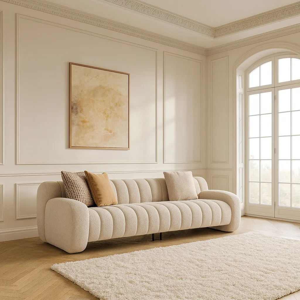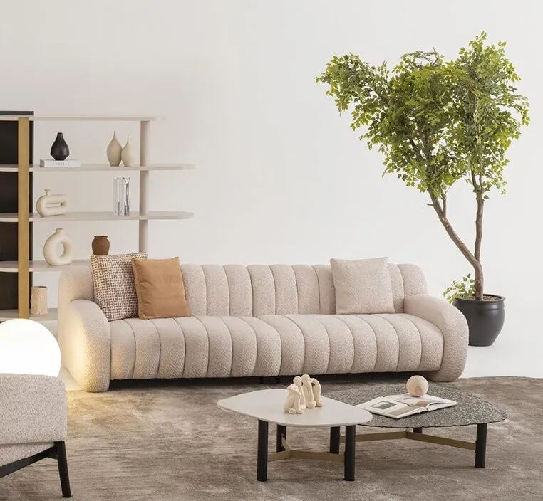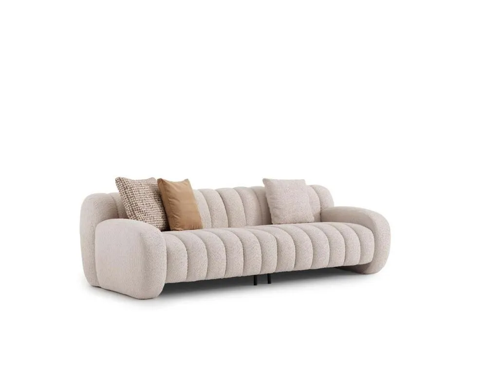 استمتع بأجواء من الراحة والرقي مع هذا الكنب الثلاثي الأنيق بلونه البيج الهادئ، الذي يضفي لمسة دفء ونعومة على أي مساحة داخل منزلك. تصميمه العصري وحجمه المثالي يجعلان منه خيارًا رائعًا لغرف المعيشة، صالات الاستقبال، أو حتى المساحات المفتوحة التي تحتاج إلى قطعة أنيقة وواسعة في آنٍ واحد. تم تنجيد الكنب بخامات عالية الجودة تتكون من 80% قطن، 10% بوليستر، و10% بولي بروبلين، لتمنحك ملمسًا ناعمًا يدوم طويلاً. هذا المزيج المتوازن يوفر مقاومة ممتازة للتآكل، ويحافظ على لون القماش ومرونته مع مرور الوقت، ما يجعله مثاليًا للاستخدام اليومي دون أن يفقد جاذبيته.