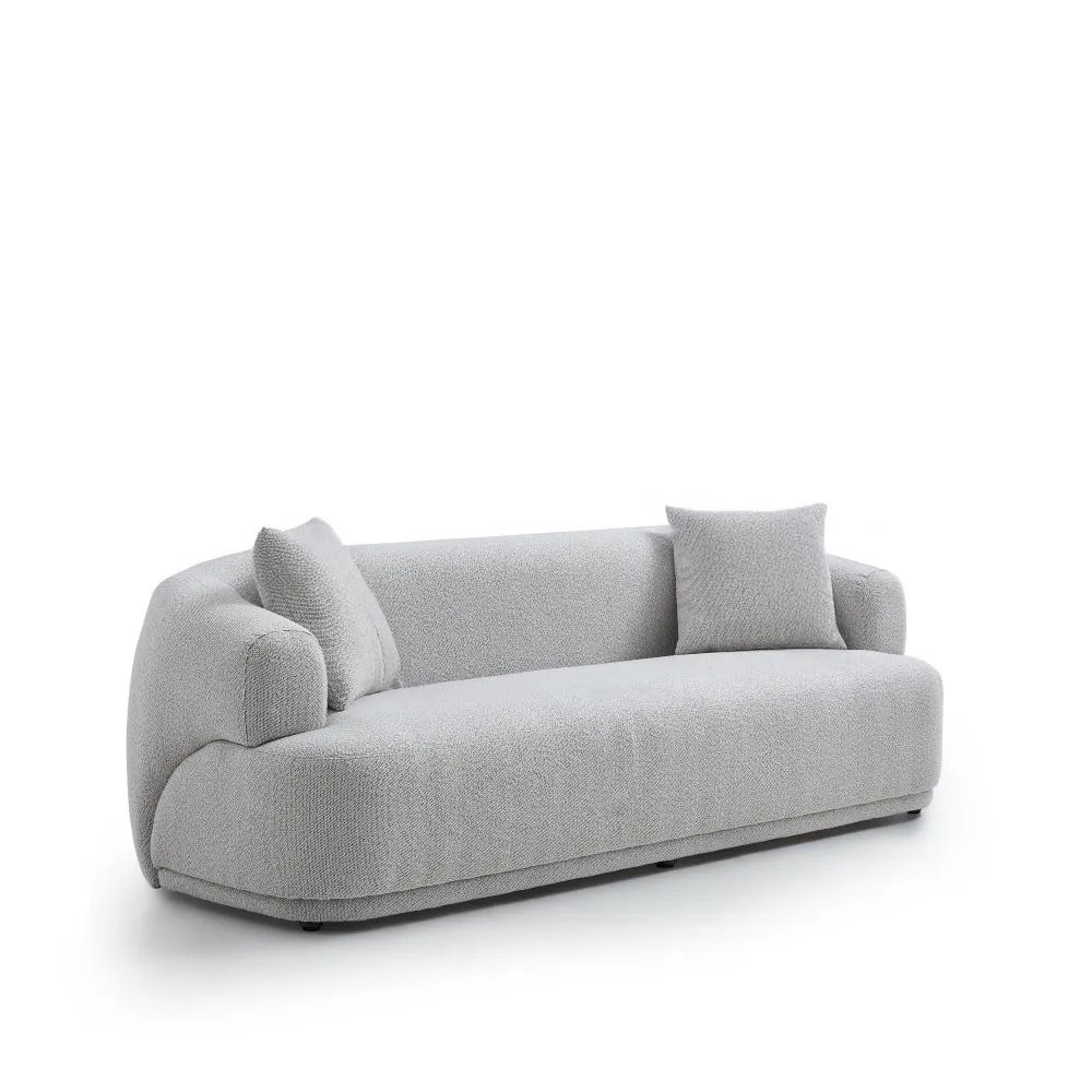 امتلك اقصى حد من الراحة والإسترخاء و أضف الأناقة والفخامة لمنزلك باقتناء هذه الكنبة المميزة . مصنعة من خامات عالية الجودة وبتصميم عصري يضفي لمسة جمال على منزلك لتحصل على الشكل الجميل مع القوة والمتانة بنفس الوقت . مصنوعة من الخشب الرقائقي وقوائم من الستانلس ستيل مع حشوة إسفنج مريح وتنجيد خارجي بقماش القطن والكتان. الكنبة تتضمن وسادتين.