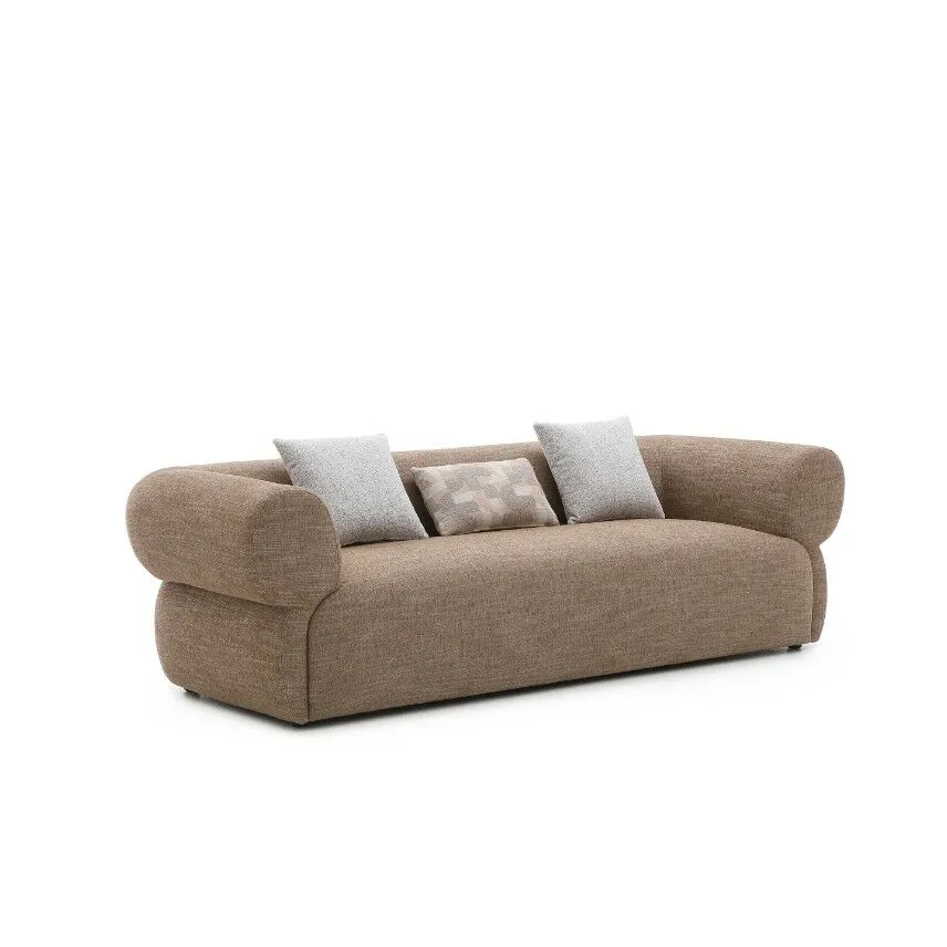 أضف لمسة من الفخامة والأناقة إلى غرفة المعيشة مع هذه الكنبة المودرن المصنوعة من خشب الرقائقي عالي الجودة والمكسوة بقماش البوليستر المتين والمريح. تأتي الأريكة بتصميم أنيق منخفض بستايل عصري مميز